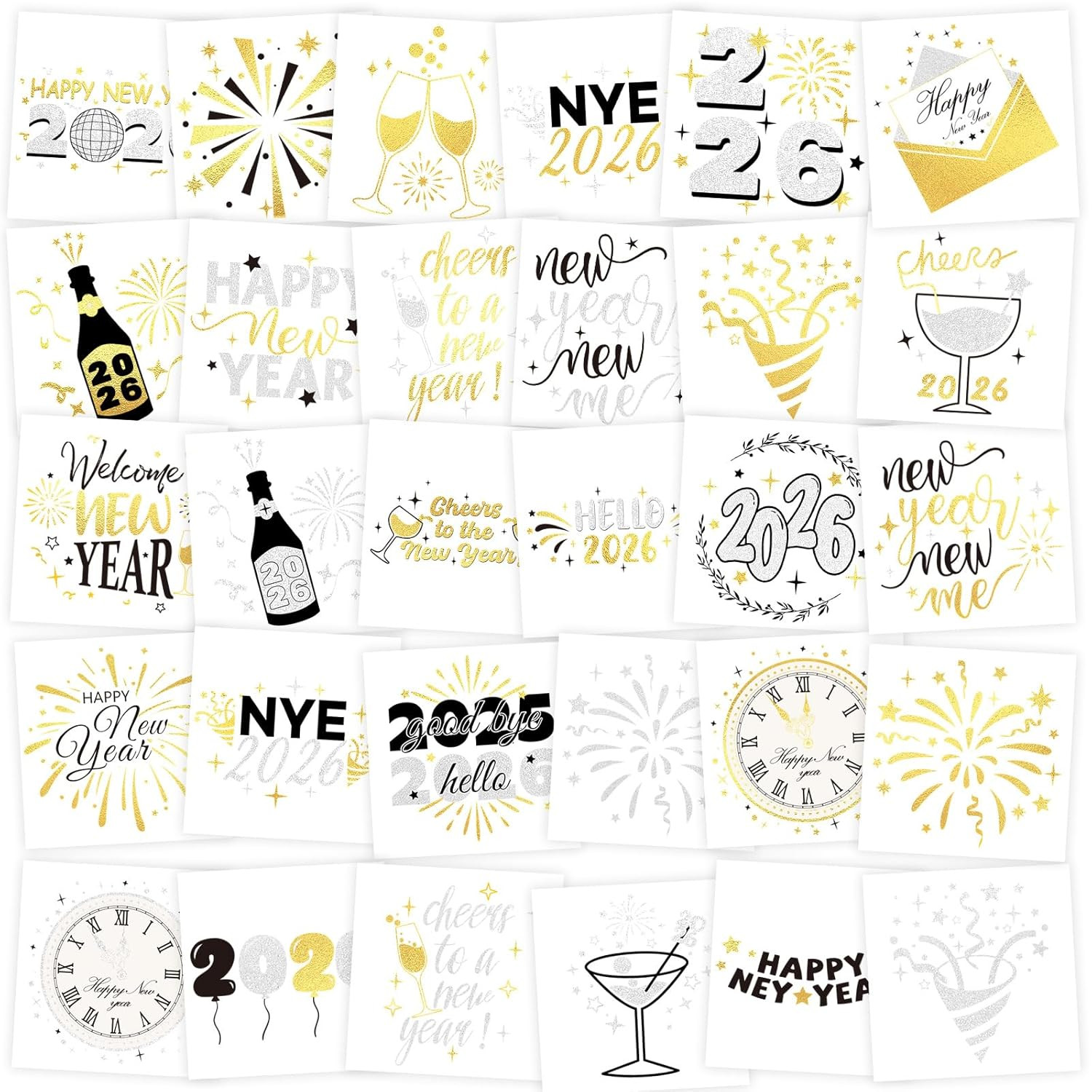 как выглядит 2026 New Years Eve Temporary Tattoos, 120 Foil Styles New Year Party Supplies Bl фото