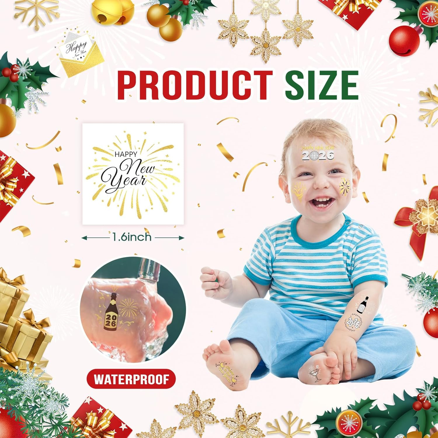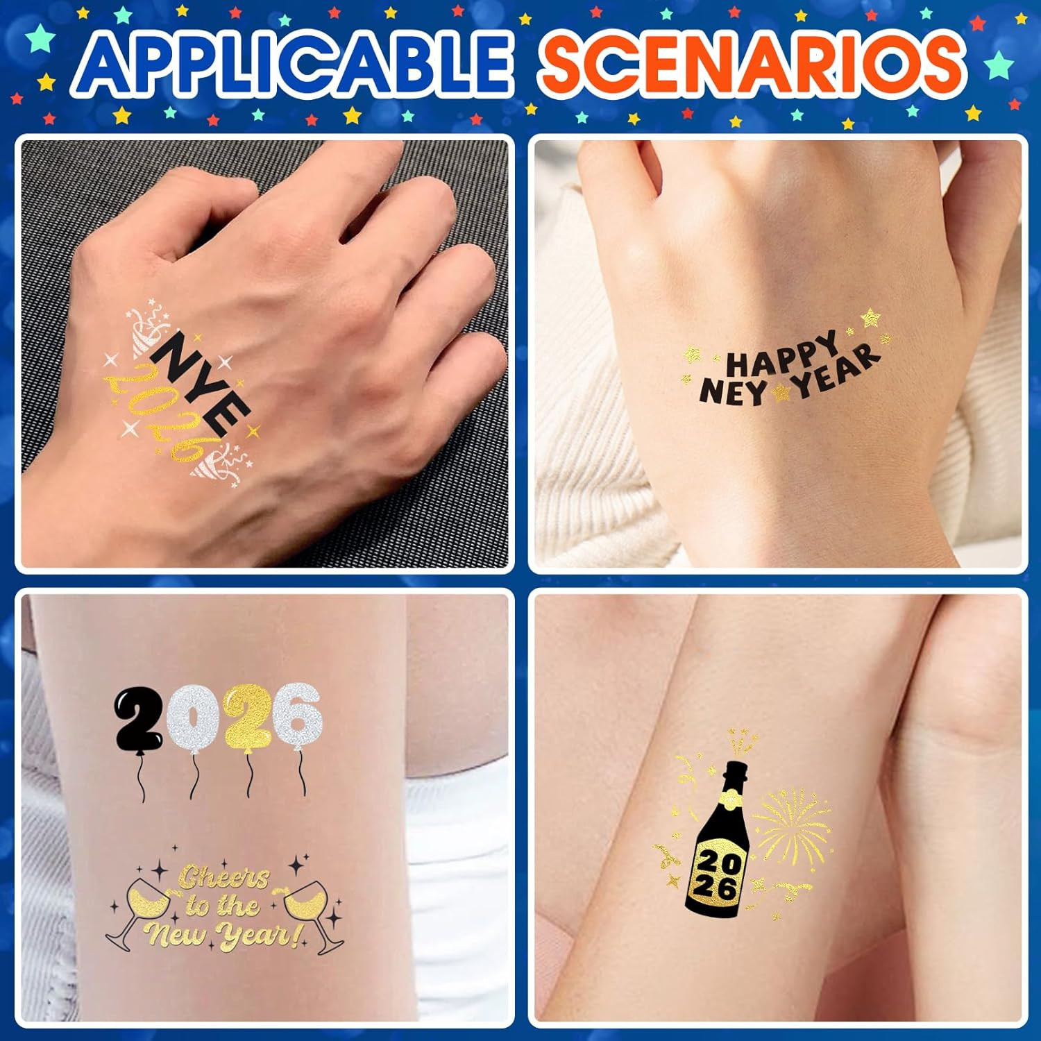 2026 New Years Eve Temporary Tattoos, 120 Foil Styles New Year Party Supplies Bl