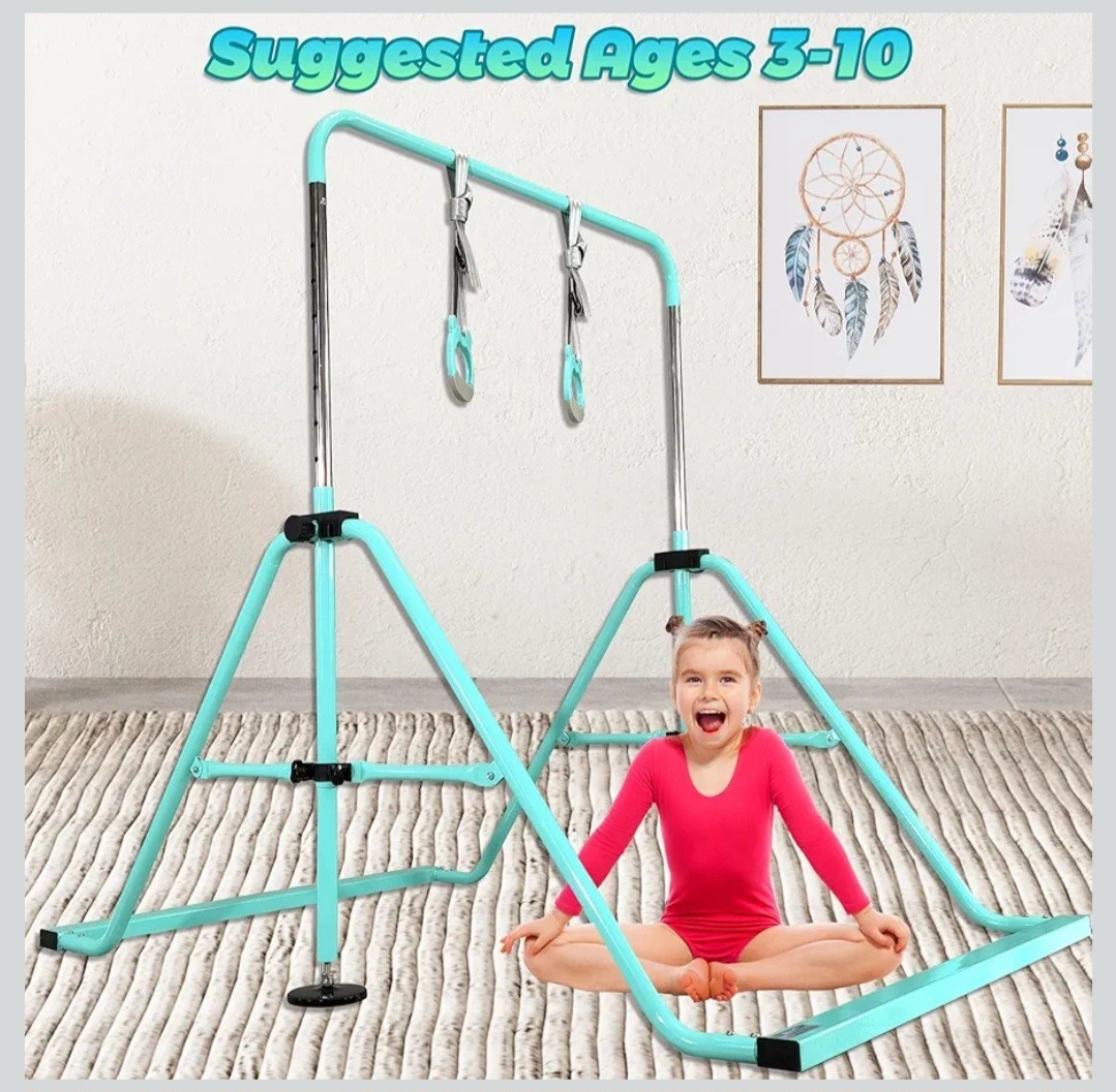 как выглядит PreGymnastic Folding Gymnastics Bar with Rings, Foldable Kip Bar with Sturdier фото
