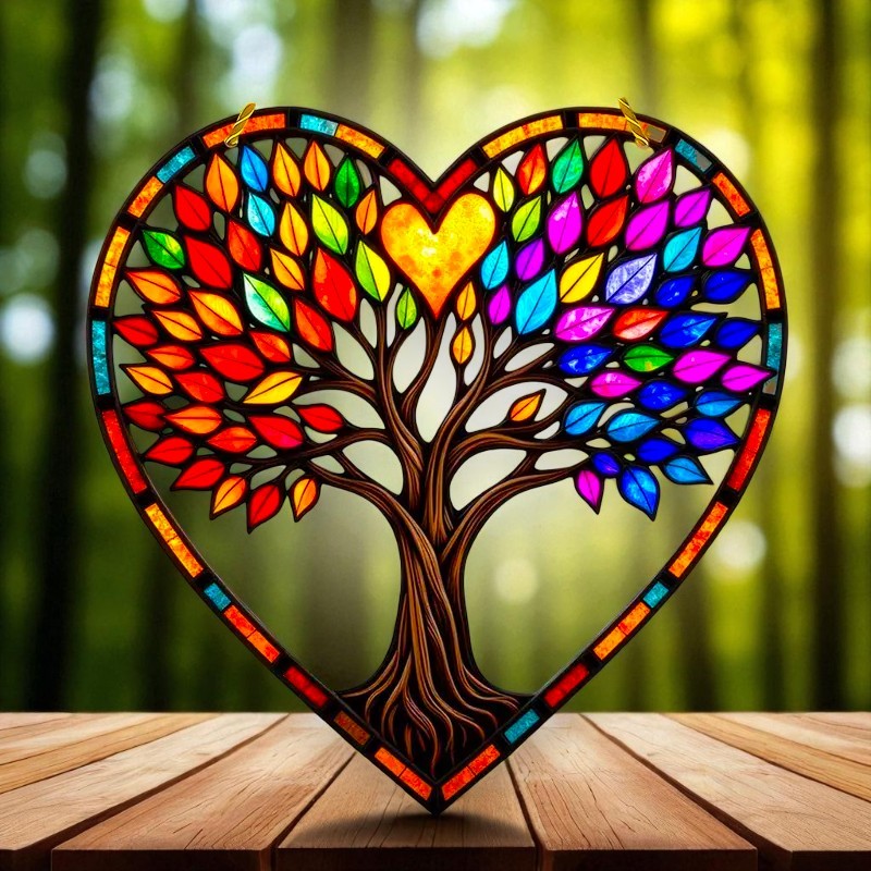 8 Heart Tree Suncatcher Faux Stained Glass Acrylic Rainbow Window Hanging Decor