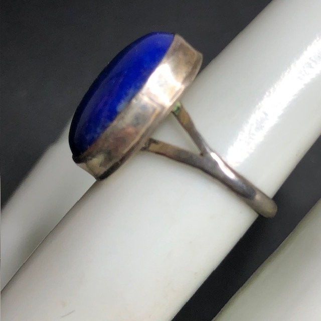 как выглядит 9212 VNTG Sterling Silver Lapis Lazuli Oval Cabochon Ring Size 5 фото