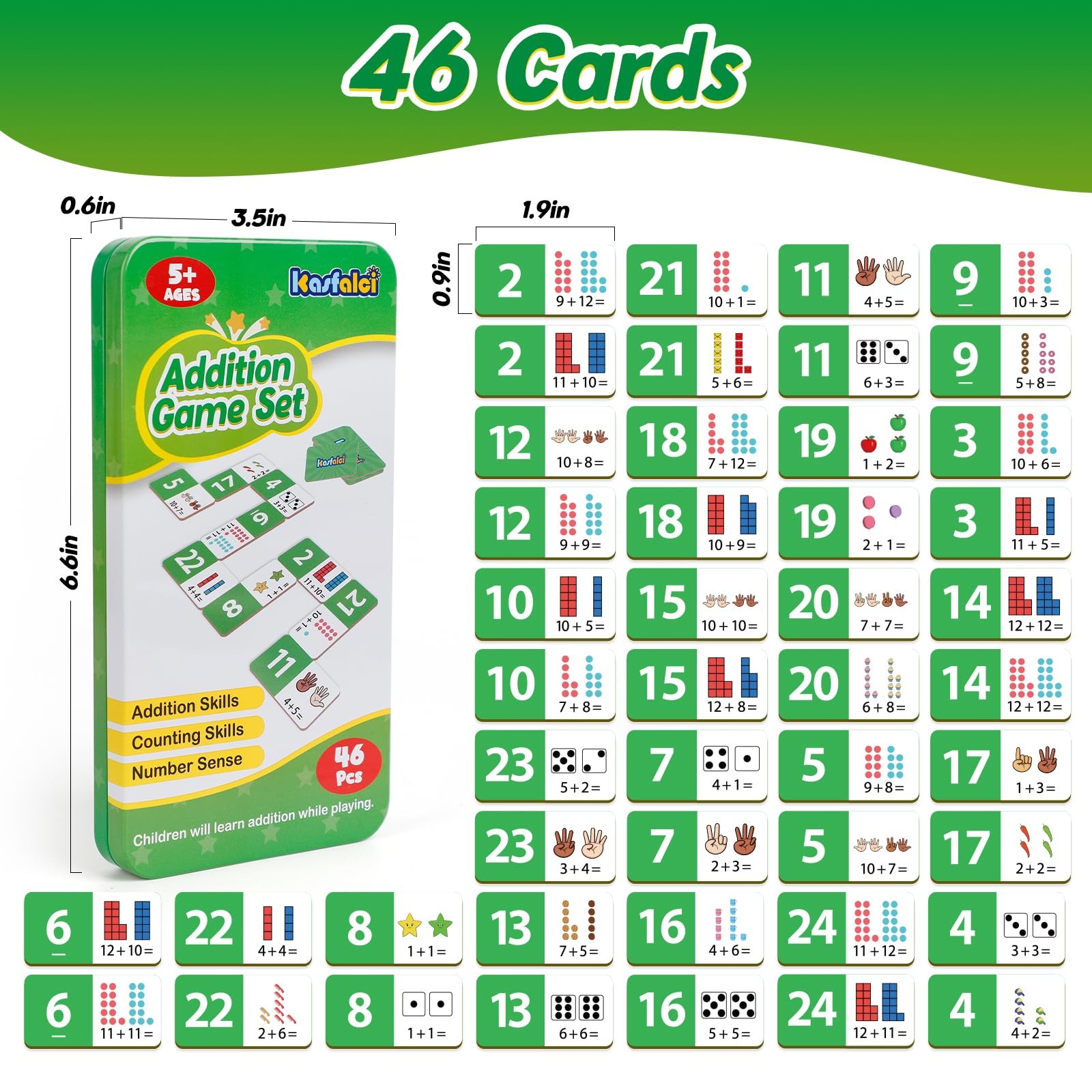 Kasfalci Addition Dominoes Set,Math Games for Kids,Math Manipulatives,Countin...