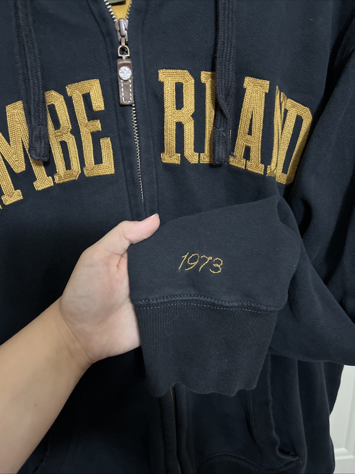 Timberland Spell Out Zip Up Hoodie Size Large Navy