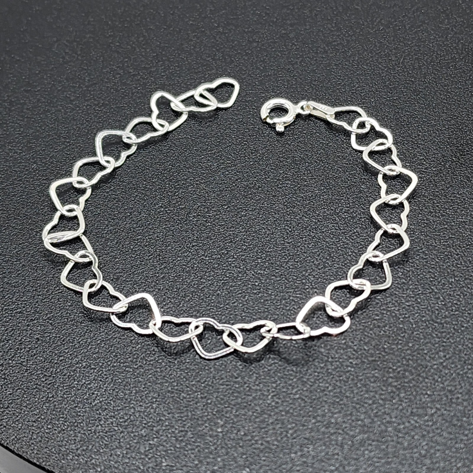 925 NEW Sterling Silver Hearts Bracelet 6mm 7 FREE SHIPPING