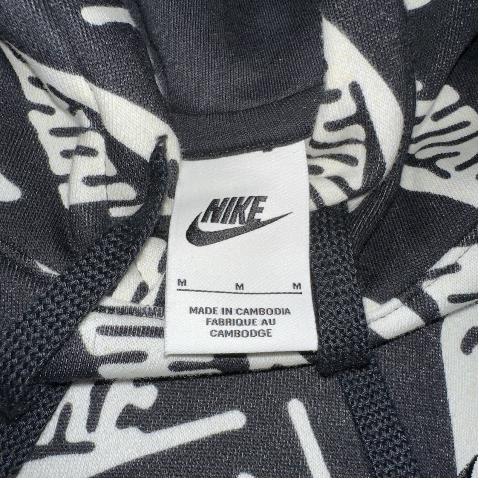 Nike Sportswear-All Over Print-Pullover Hoodie Sweatshirt-Black Men s Medium