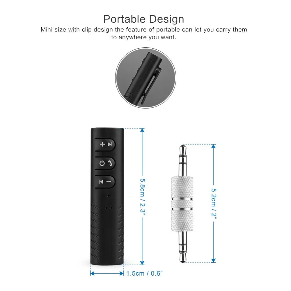 Mini Wireless Bluetooth Car Kit Hands free 3.5mm Jack AUX Audio Adapter Control