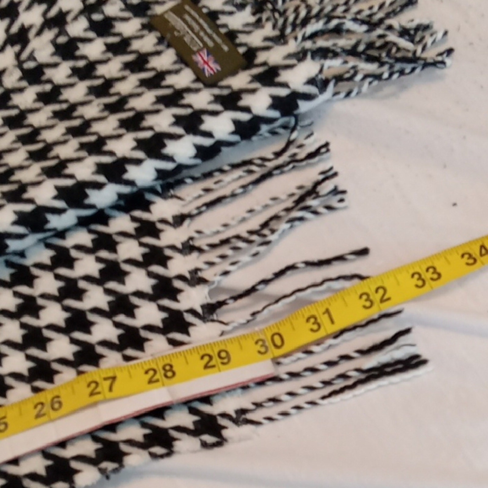 как выглядит Elegant Black and White Houndstooth Scarf. 100 Cashmere. Made in Scotland фото