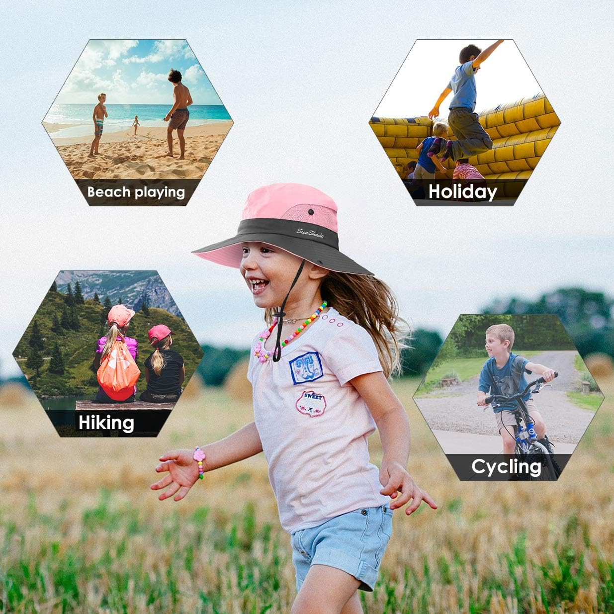 IYEBRAO Kids UV Sun Hat with Ponytail Hole UPF 50 Bucket Cap for Girls Summer Be