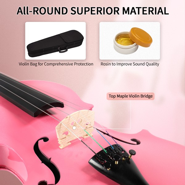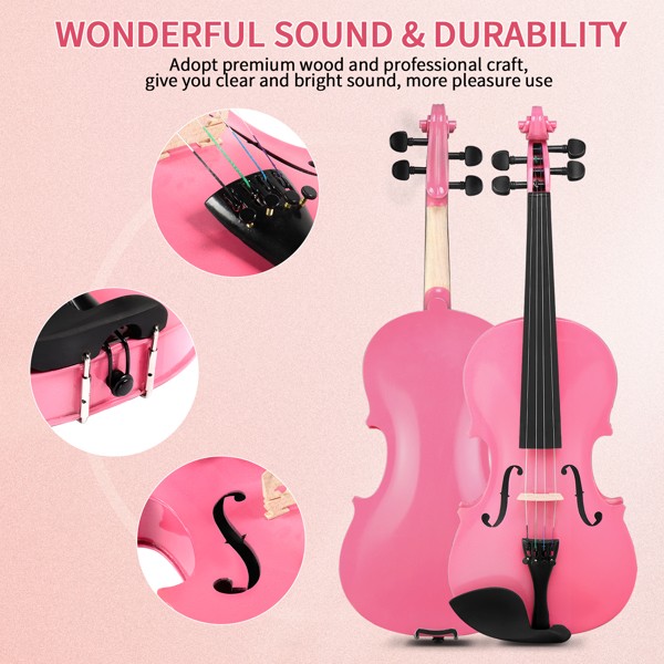 4/4 Full Size Acoustic Beginners Students Violin Set - Case, Bow Rosin,Pink