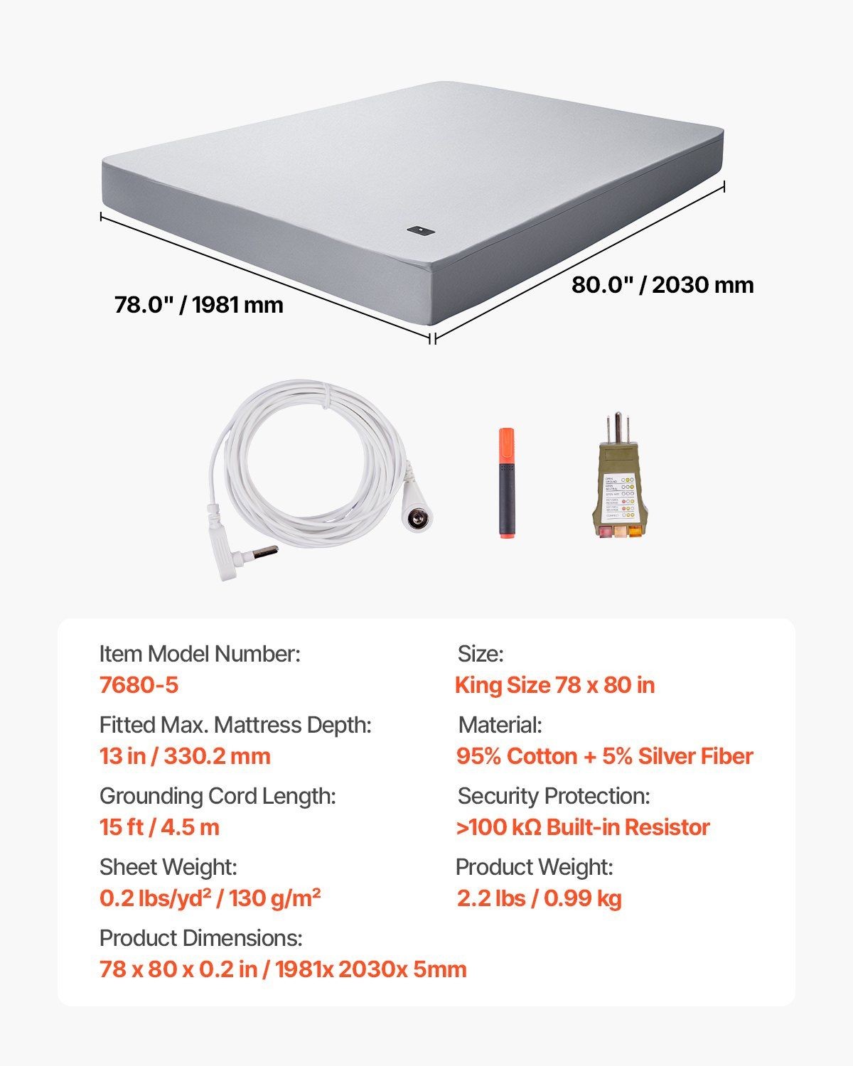 King 95 Cotton 5 Silver Grounding Fitted Sheet 78x80in 13in Pocket Fit