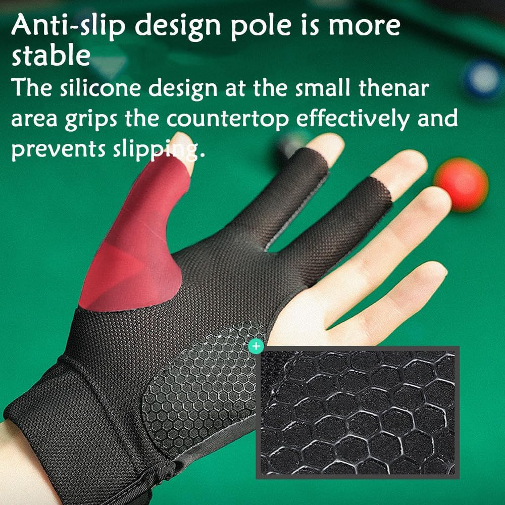 Pool Glove Left Hand, Billiards Glove, Billiard Pool Gloves for Left Hand 3 Fing