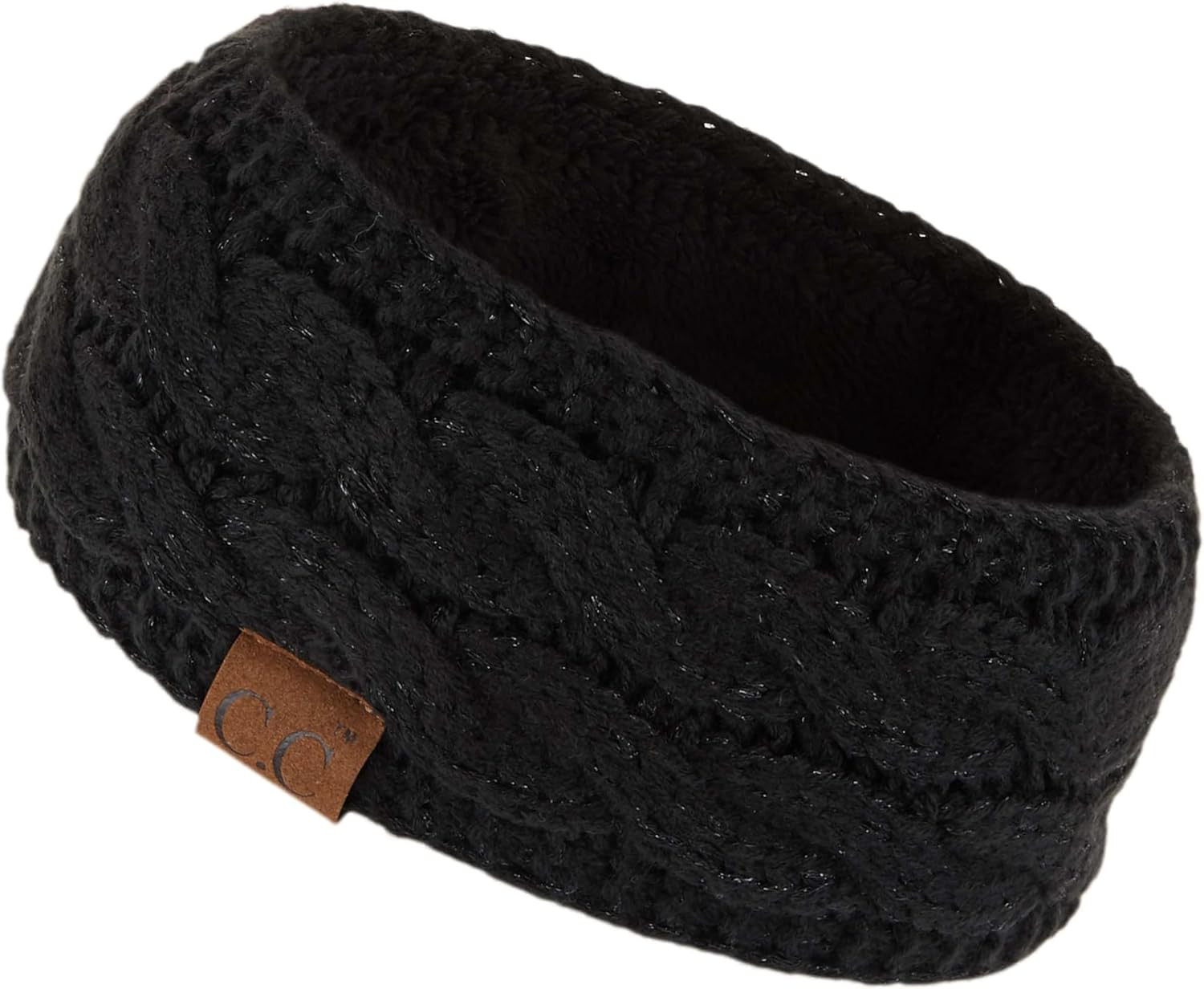 Winter Fuzzy Fleece Lined Thick Knitted Diagonal Stripes Criss-Cross Pattern Hea