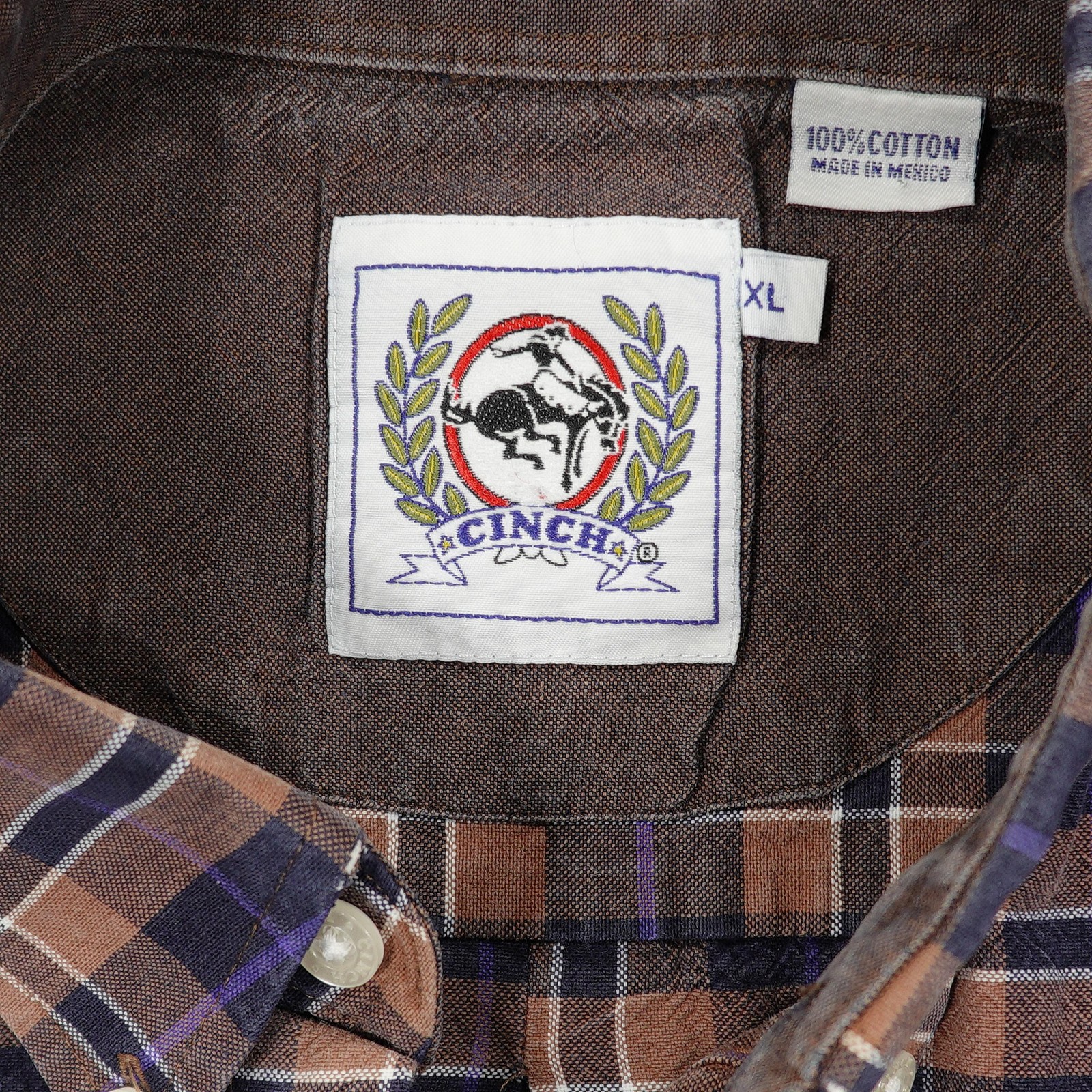 как выглядит Cinch Shirt Mens XL Brown Purple Plaid Button Down Western Long Sleeve Cotton фото