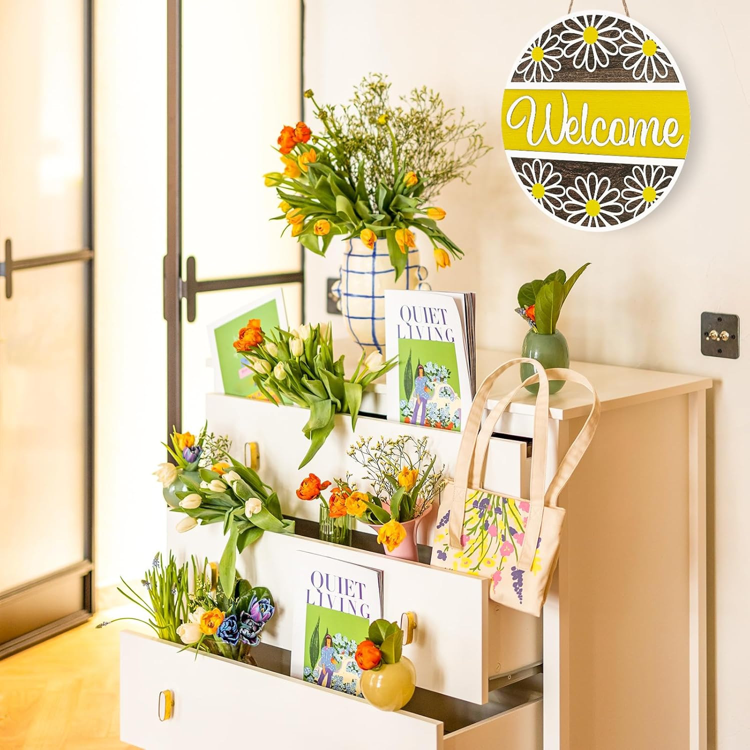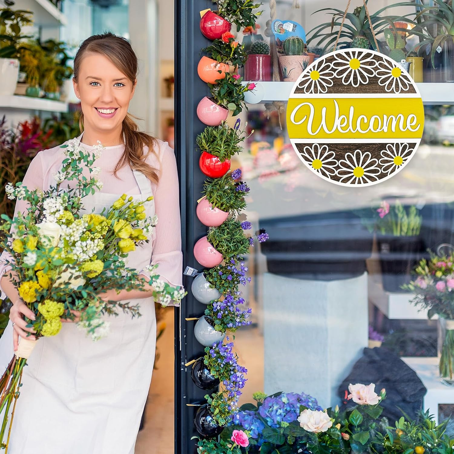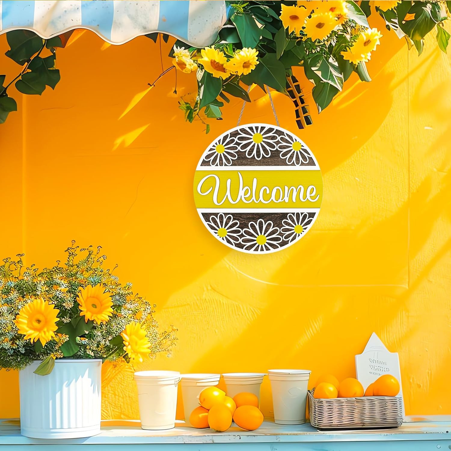 3D Daisy Welcome Door Sign Yellow White Flower Wooden Hanging Sign Front Door Ha