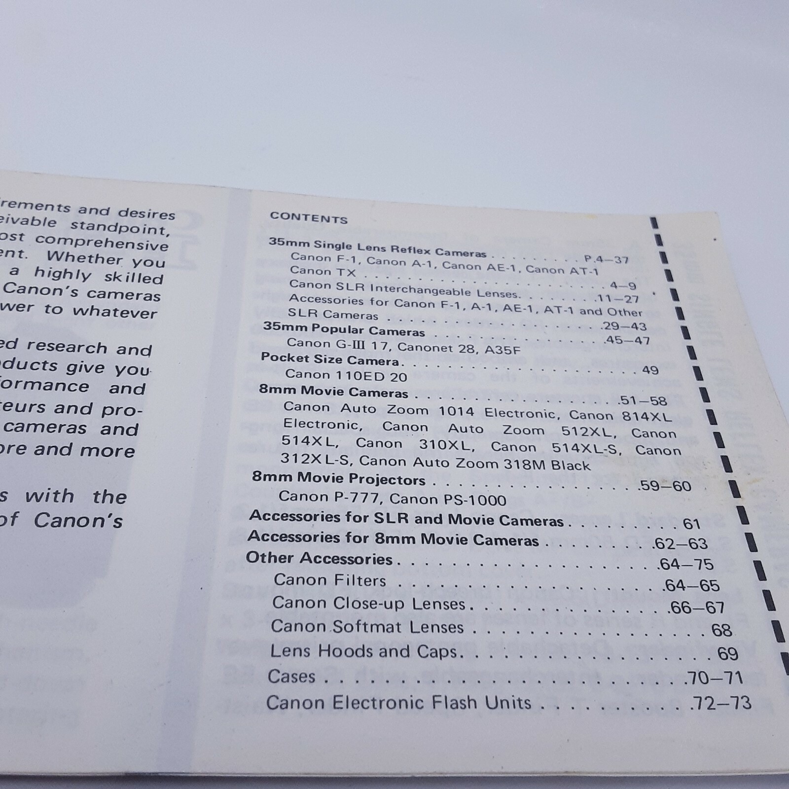 Vintage Canon Product guide information about Booklet camera lens cameras exc.