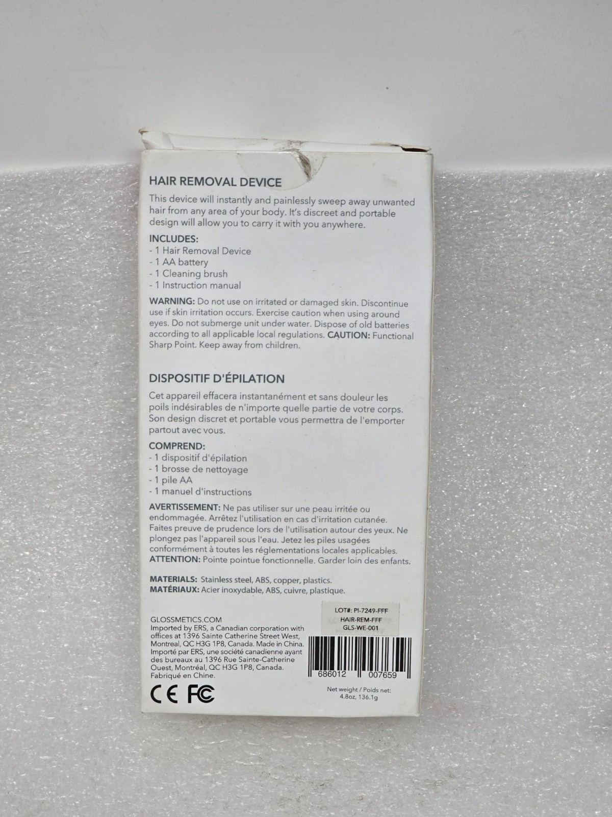 Glossmetics Electronic Electric Wireless Hair Removal Device