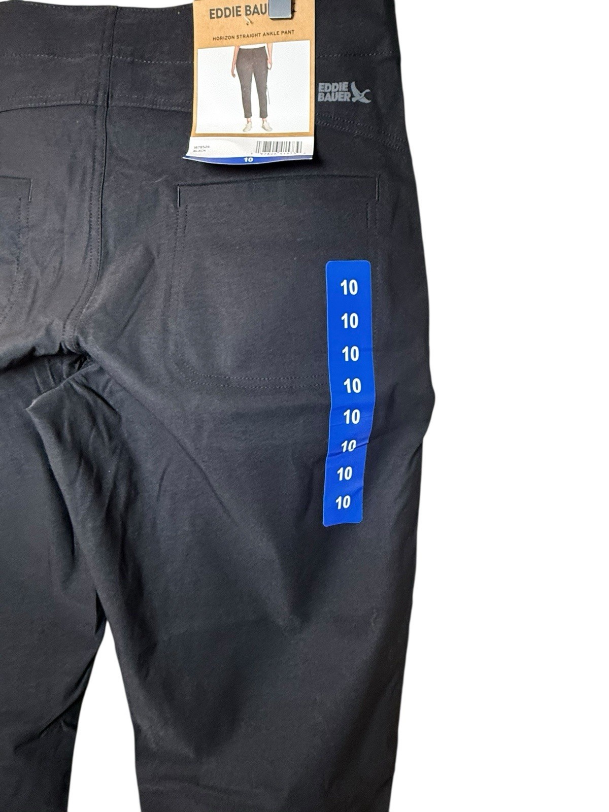NEW Eddie Bauer Women's Horizon Straight Ankle Pants Zipped Pockets Black Sz 10