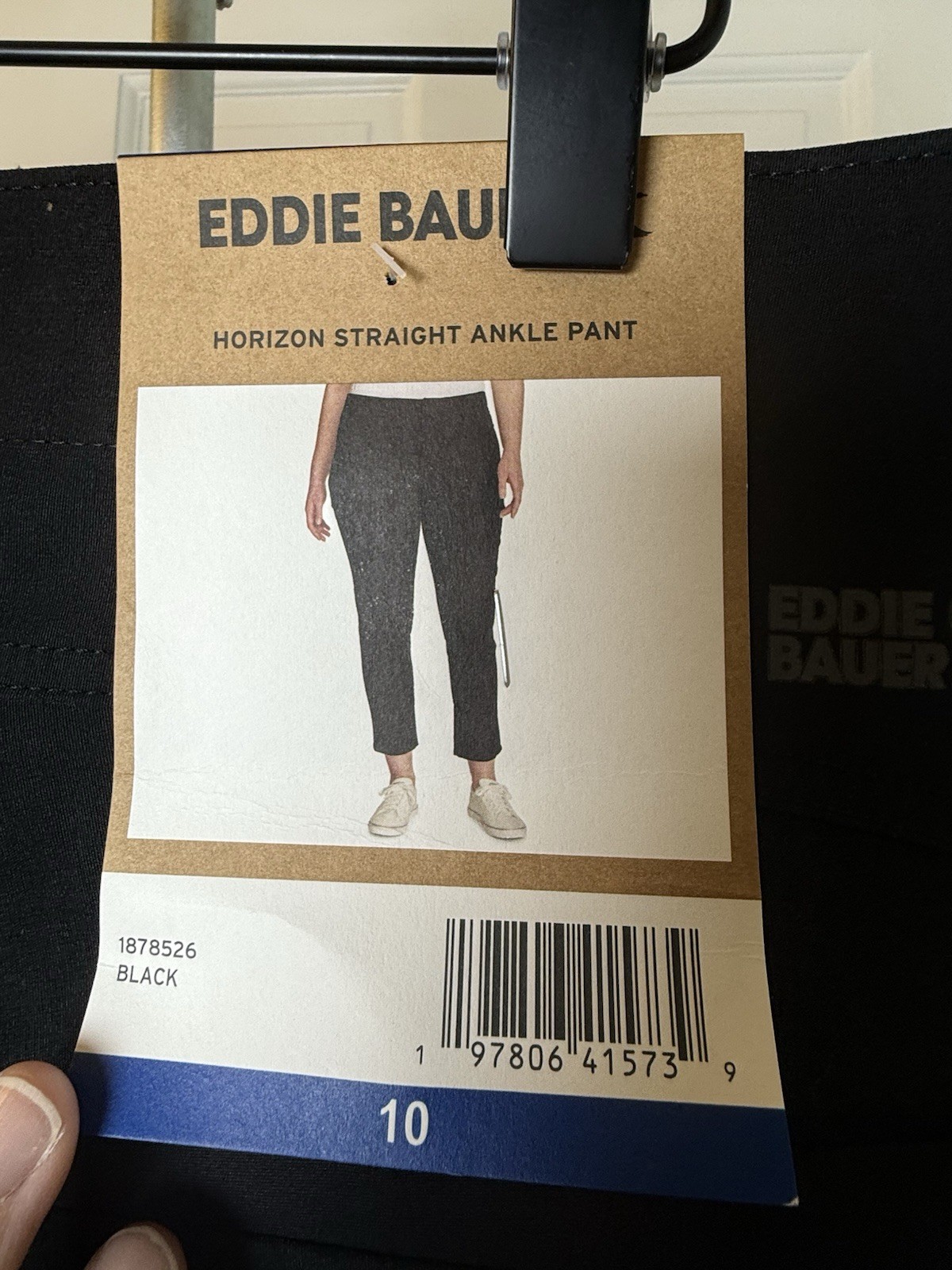 как выглядит NEW Eddie Bauer Womens Horizon Straight Ankle Pants Zipped Pockets Black Sz 10 фото