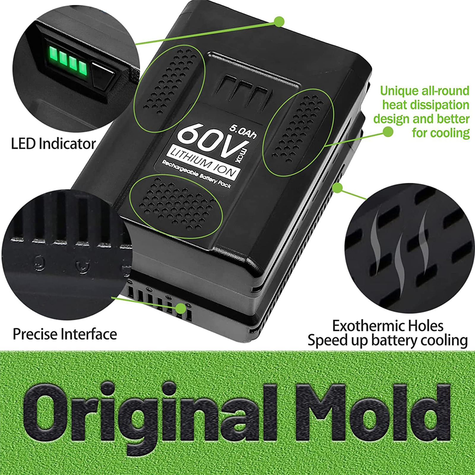 как выглядит 60V 5.0Ah for Greenworks Pro 60V Max Lithium Ion Battery LB60A00 LB60A02 LB60A03 фото