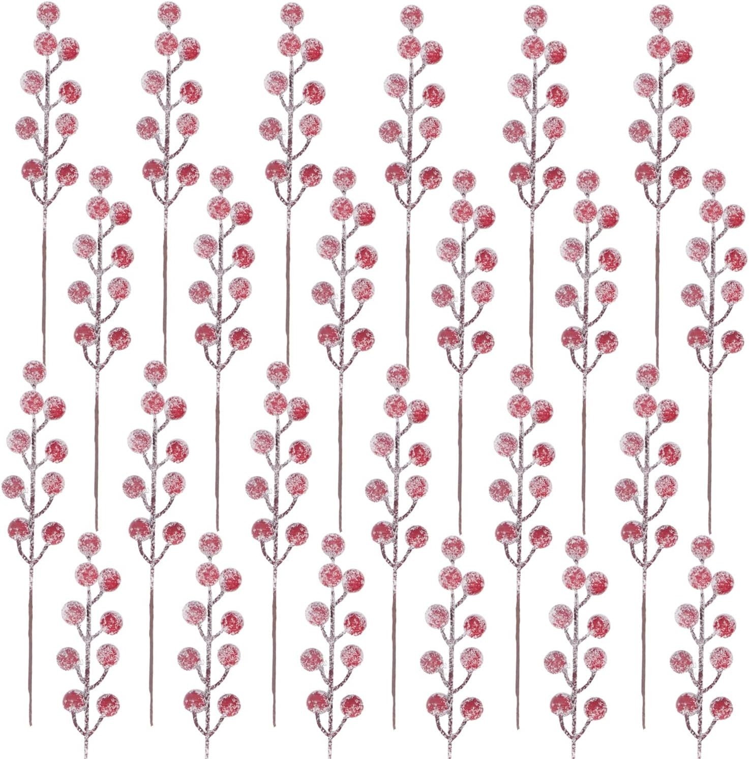 24 Pieces Artificial Holly Berry Stems 9 Christmas Picks Sprays Red