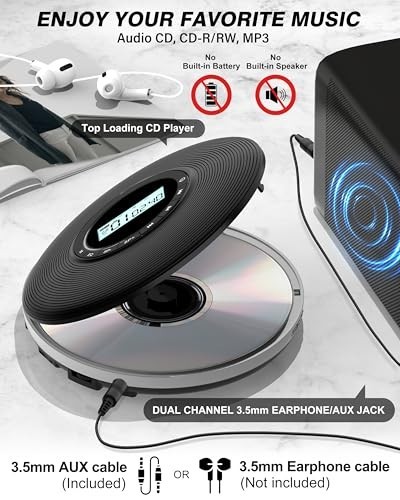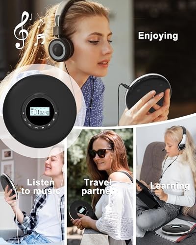Portable CD Player for Car, Anti-Skip Walkman, LCD Display, Headphones Jack, Aux
