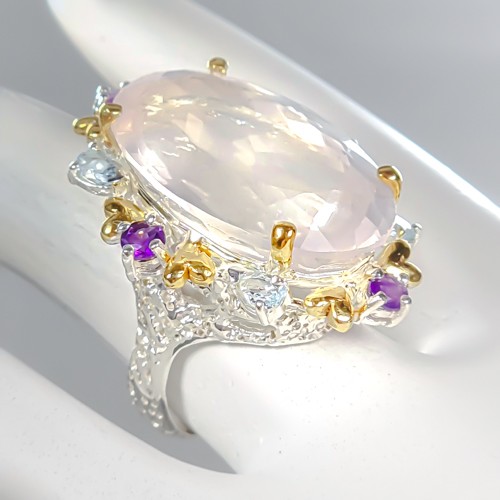 как выглядит Handmade 45 ct Natural Rose Quartz Ring 925 Sterling Silver Size 8 /R437915 фото