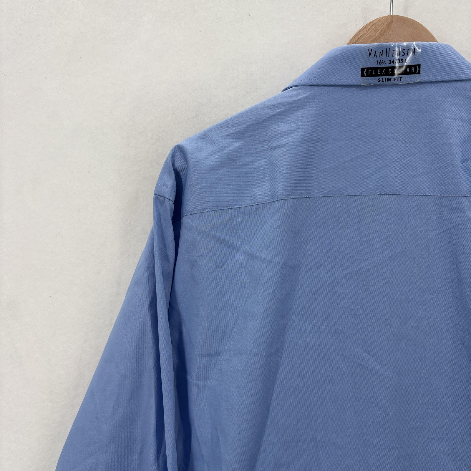 как выглядит Van Heusen Dress Shirt Mens 16.5 34-35 Blue Frost Flex Collar Slim Fit Stretch фото