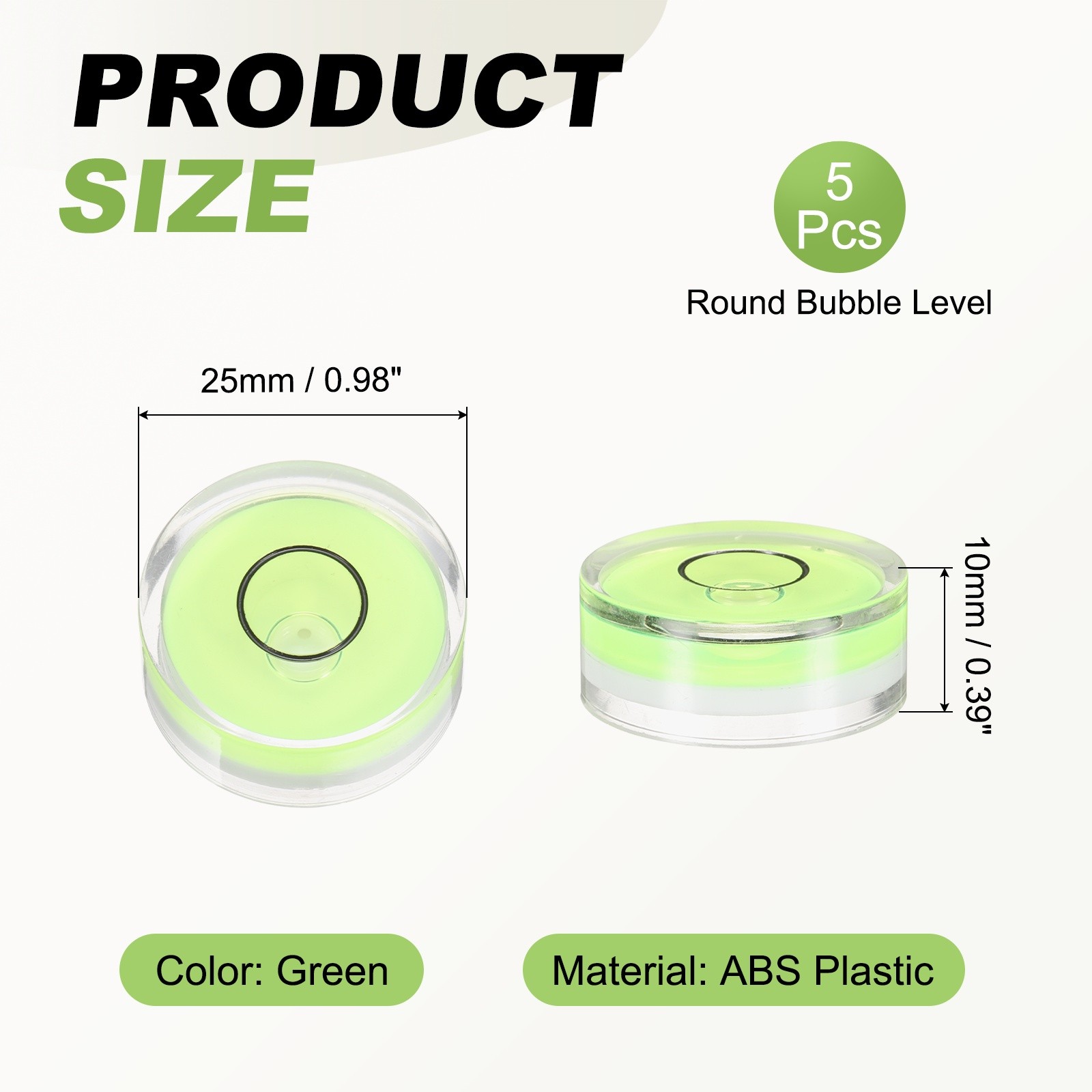 5pcs Round Bubble Level 25x10mm Mini Circular Bullseye Spirit Levels, Green