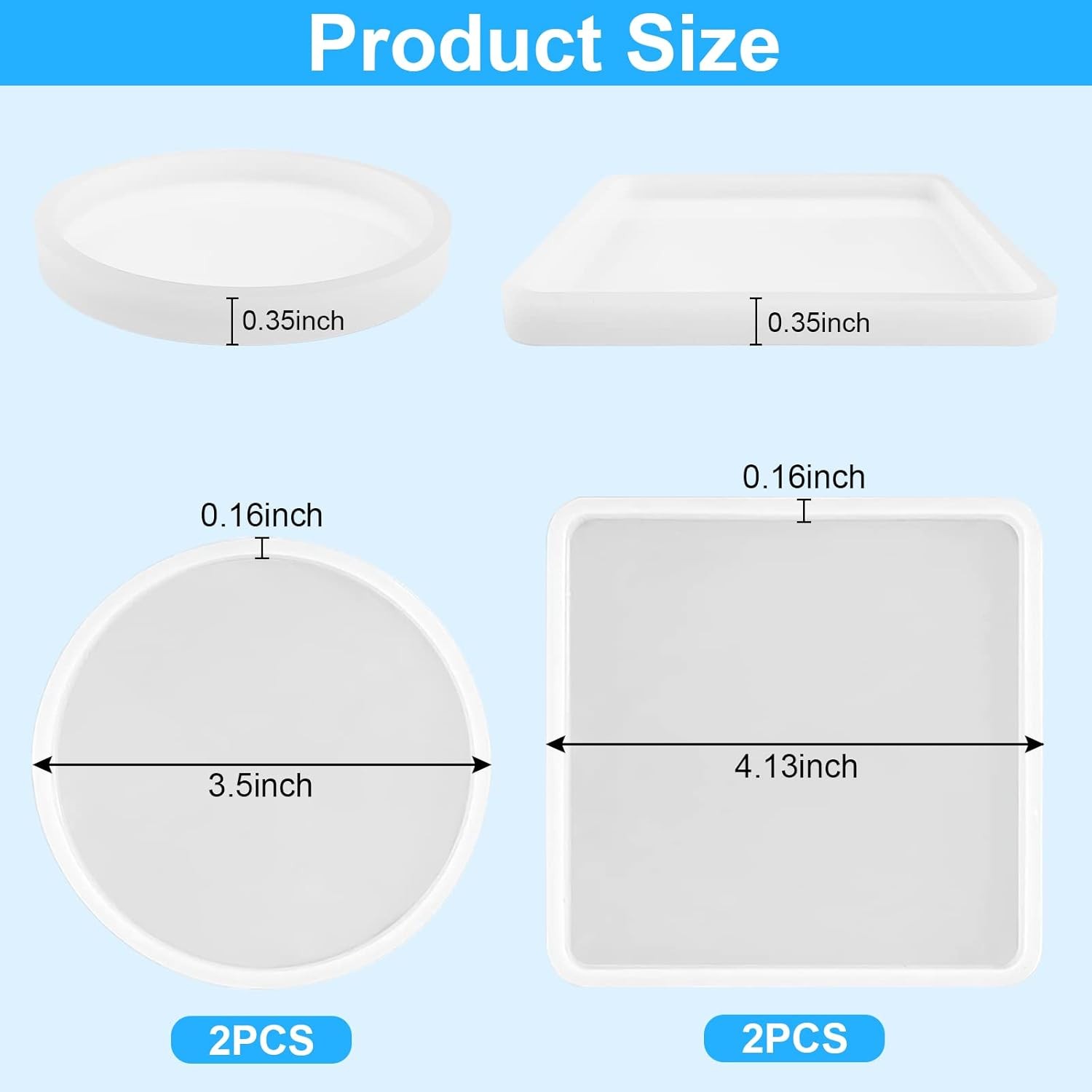 4 PCS Thickened Coaster Resin Molds, Silicone Molds for Epoxy 4pcs