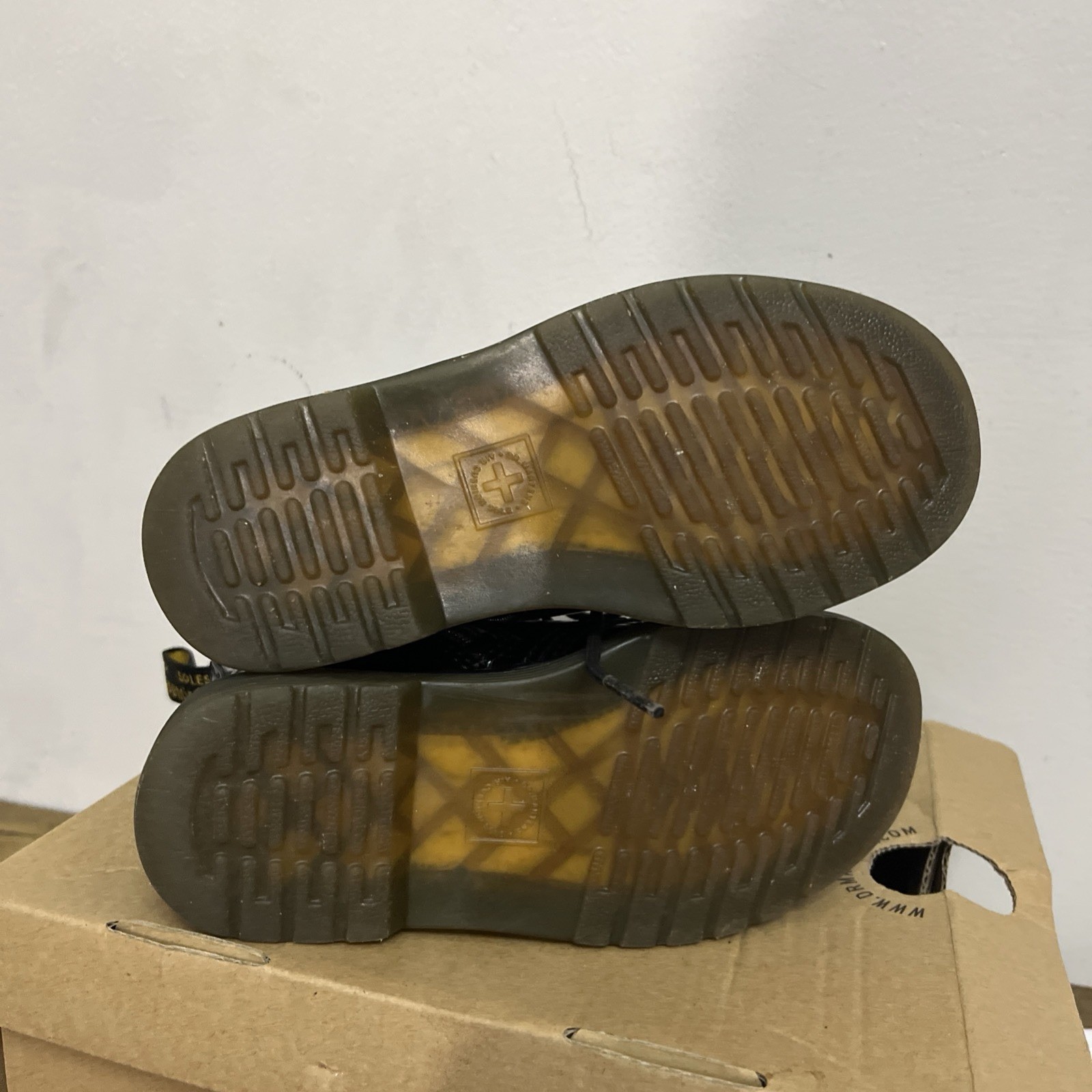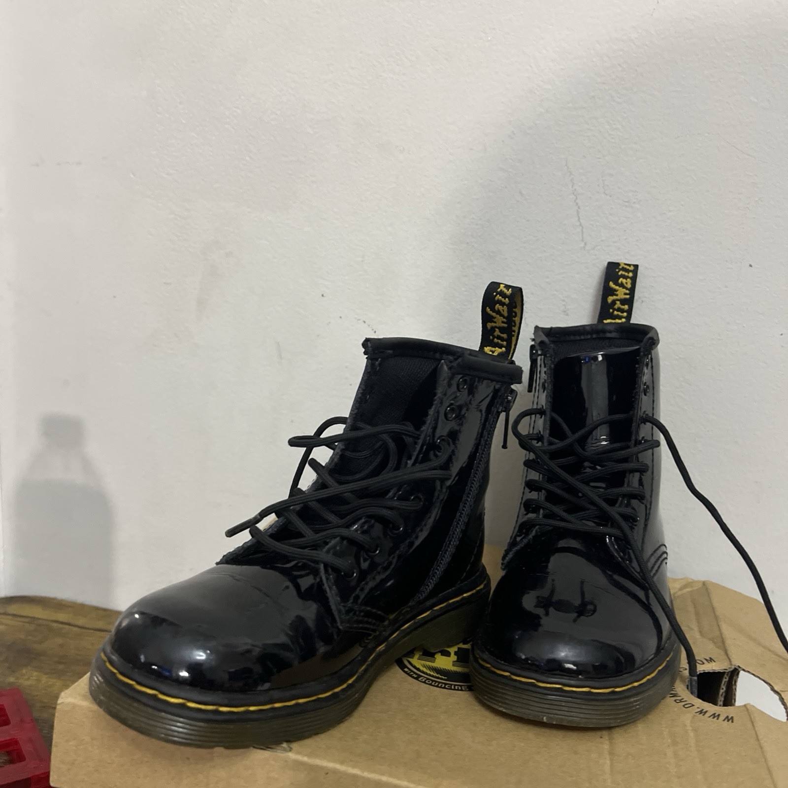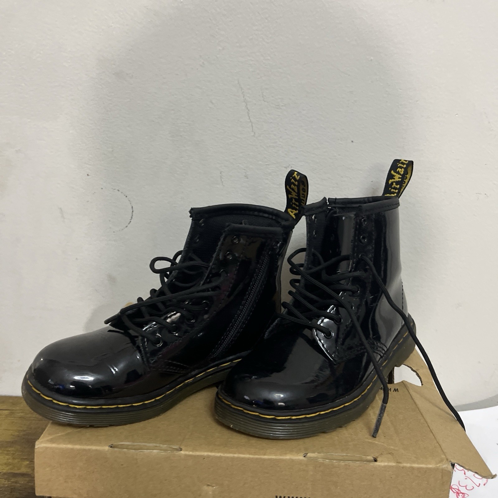 Dr Doc Martens Airwair Girls Kids Combat Boots Black Patent Leather Size 10 US