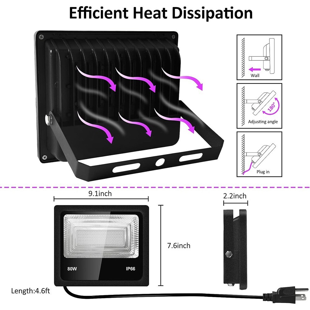 80W LED Black Glow Party Halloween Light IP66 Waterproof Outdoor Indoor Decor
