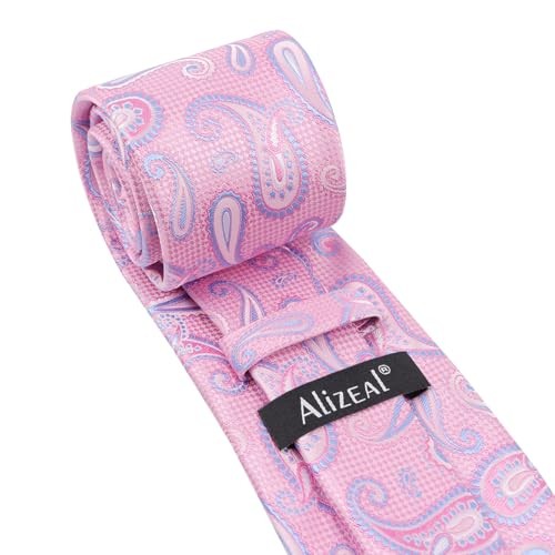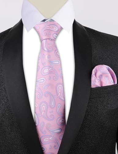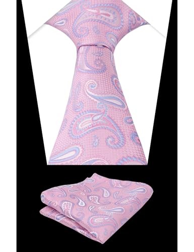 Mens Colorful Paisley Necktie and Pocket Square Sets 144-pink blue