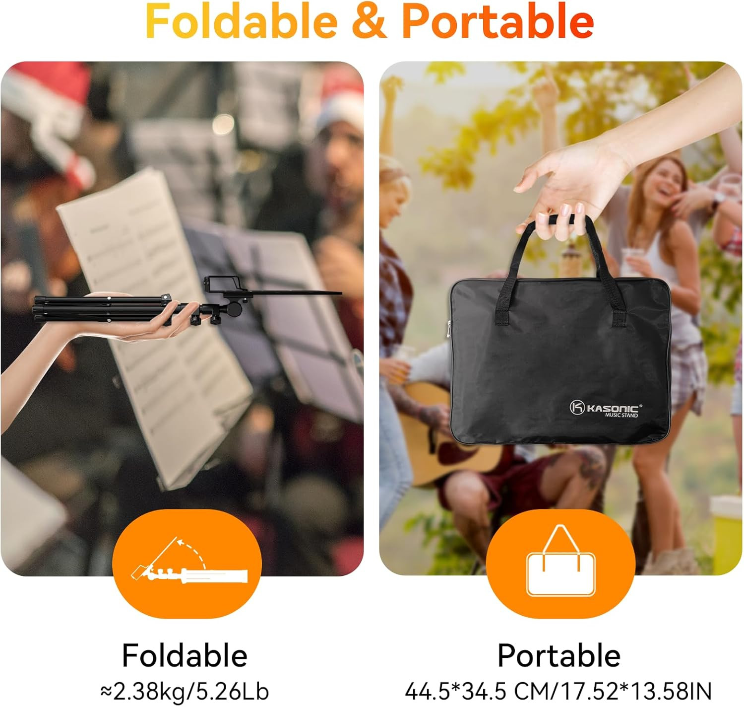 K KASONIC - Dual-Use Folding Sheet Music Stand Desktop Book Stand with Portabl