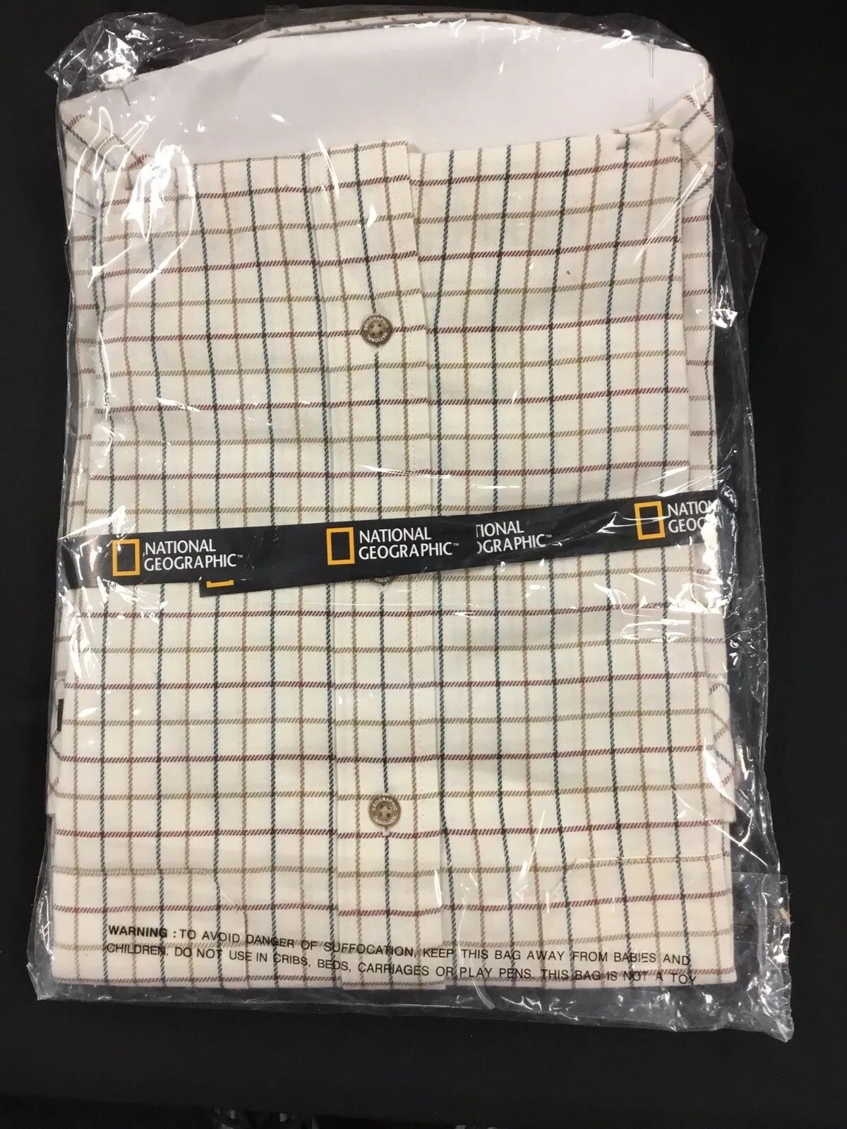 National Geographic Branded Mens Button Shirt Size M Tattersal Light Beige Plaid