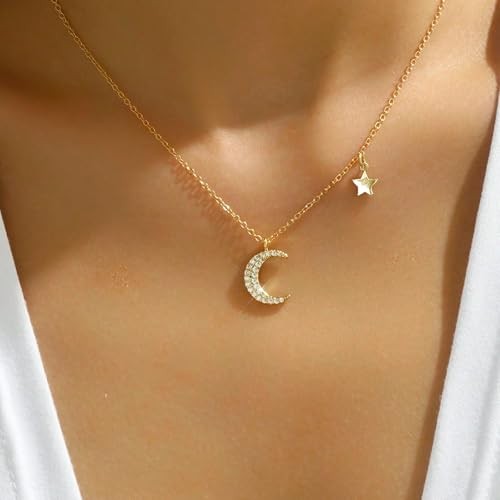 To My Daughter Necklace from Mom Dainty Gold Moon and Star Necklace for gold