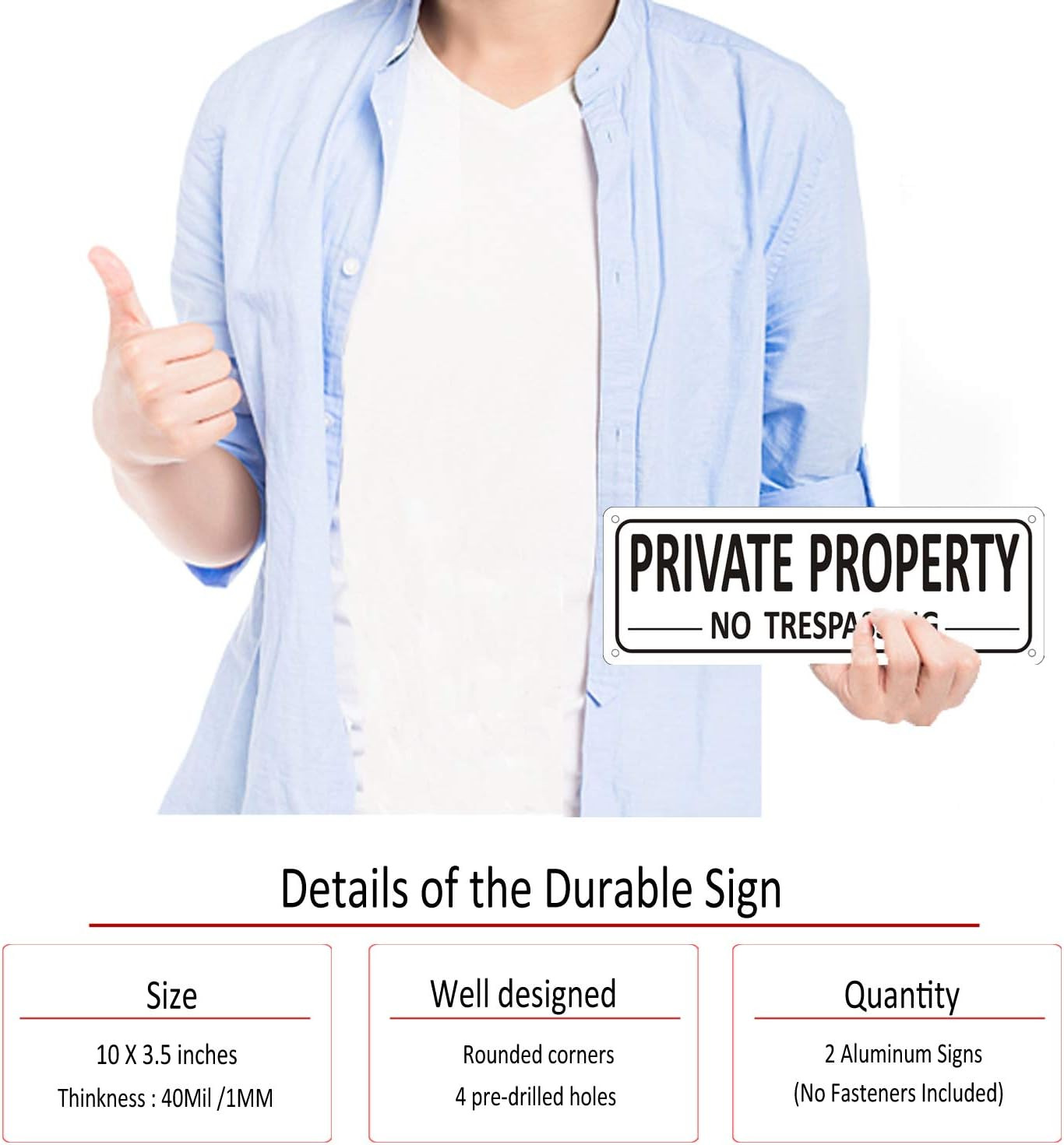 Private Property Sign 2 Pack , Aluminum No Trespassing Sign for House, 10 x 3.