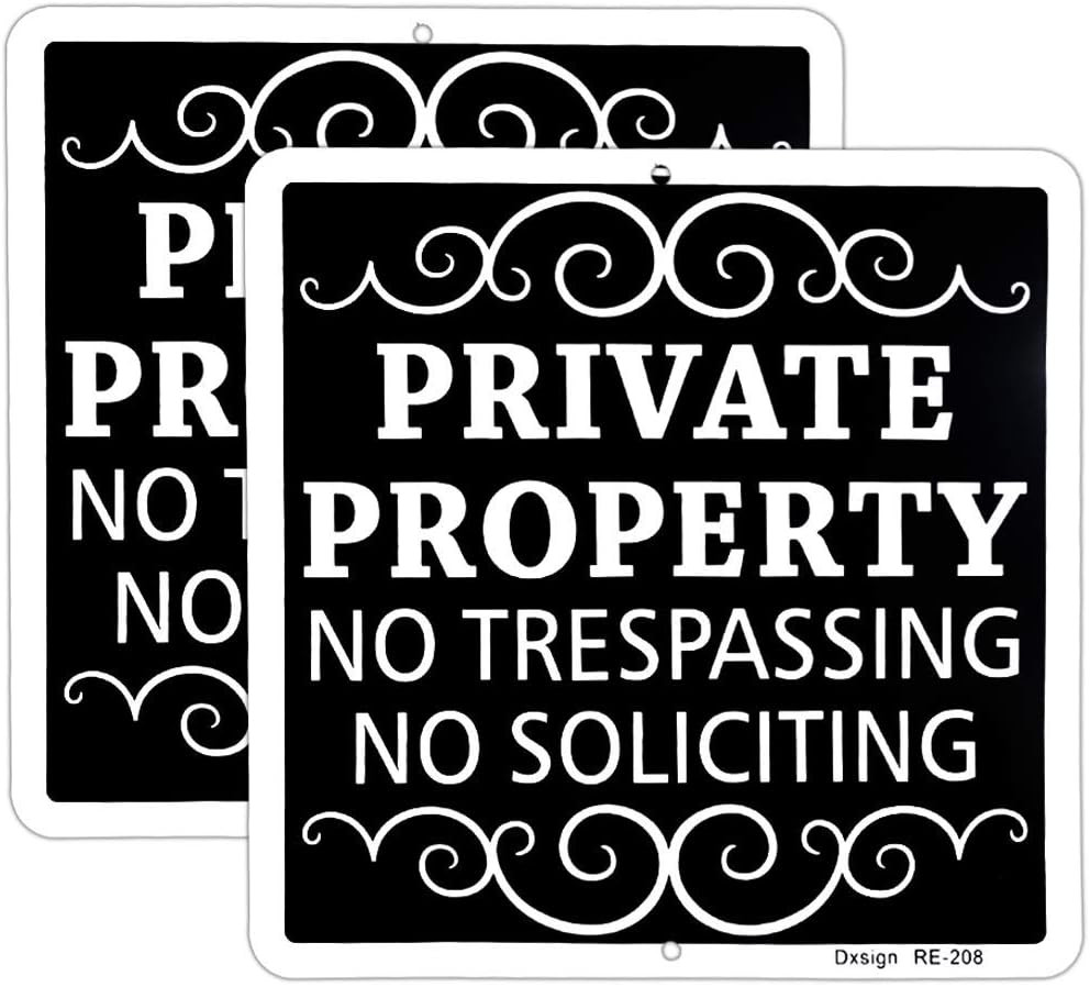 2-Pack Private Property No Trespassing No Soliciting Aluminum Signs - 9x9 Inch U