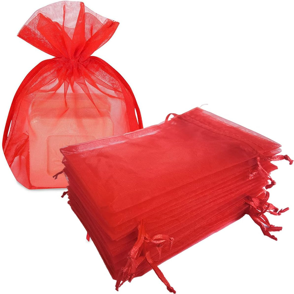 50 Pcs Organza Drawstring Gifts Bags for Jewelry,Tiny Toy, Sheer Fabric 4x6 Inch