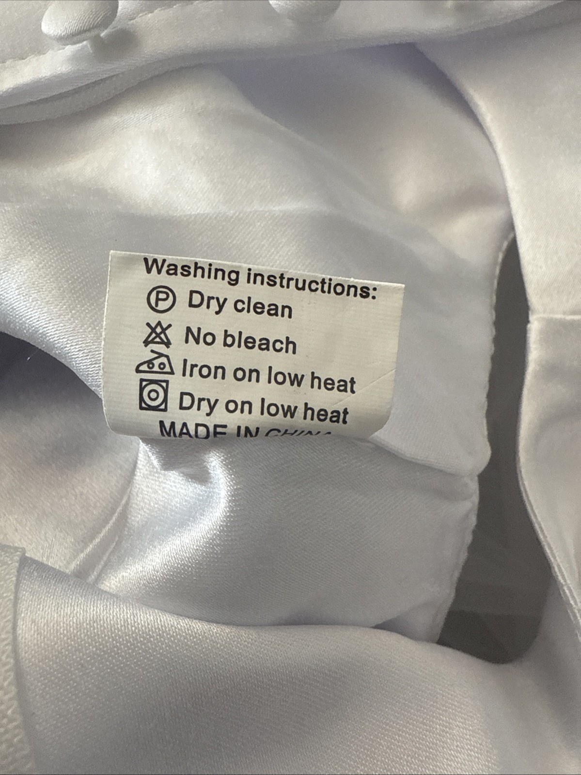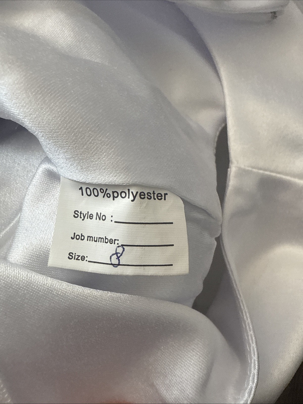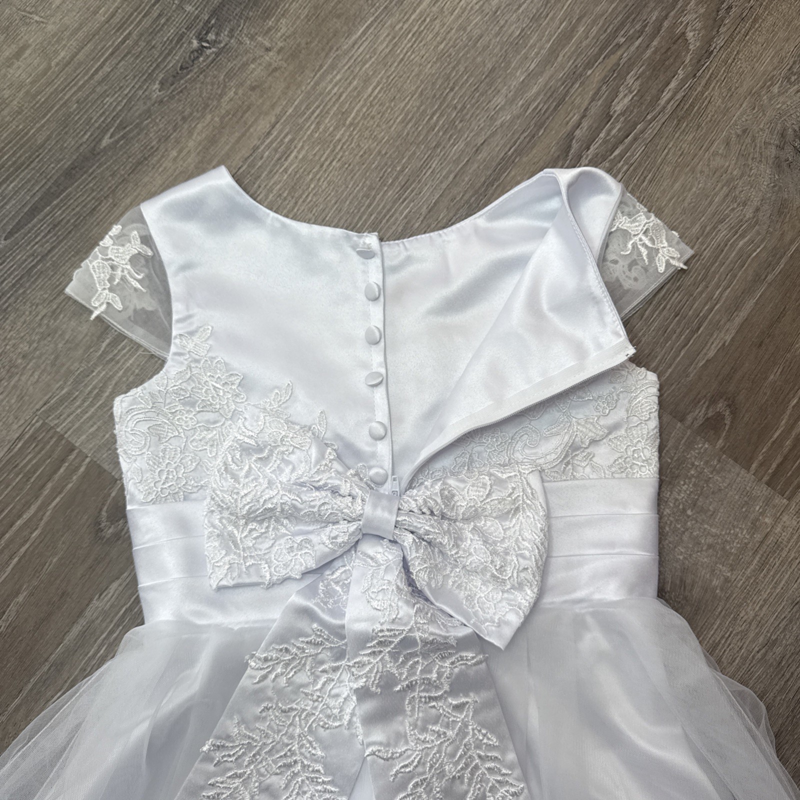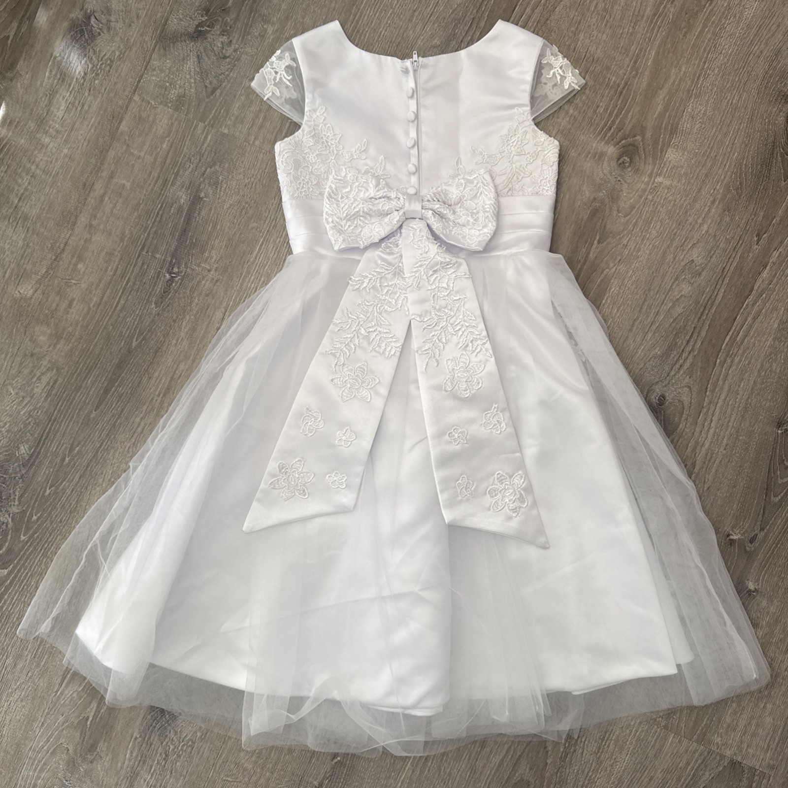 Girls White Floral Lace Tulle Bow Button Accent Dress Size 8