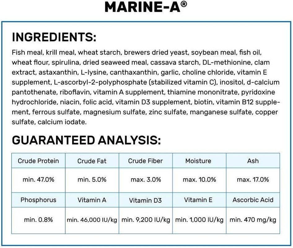 Included Components: Hikari Marine-A Pellets Fish Food for Larger Marine Fish, 3.87 oz
