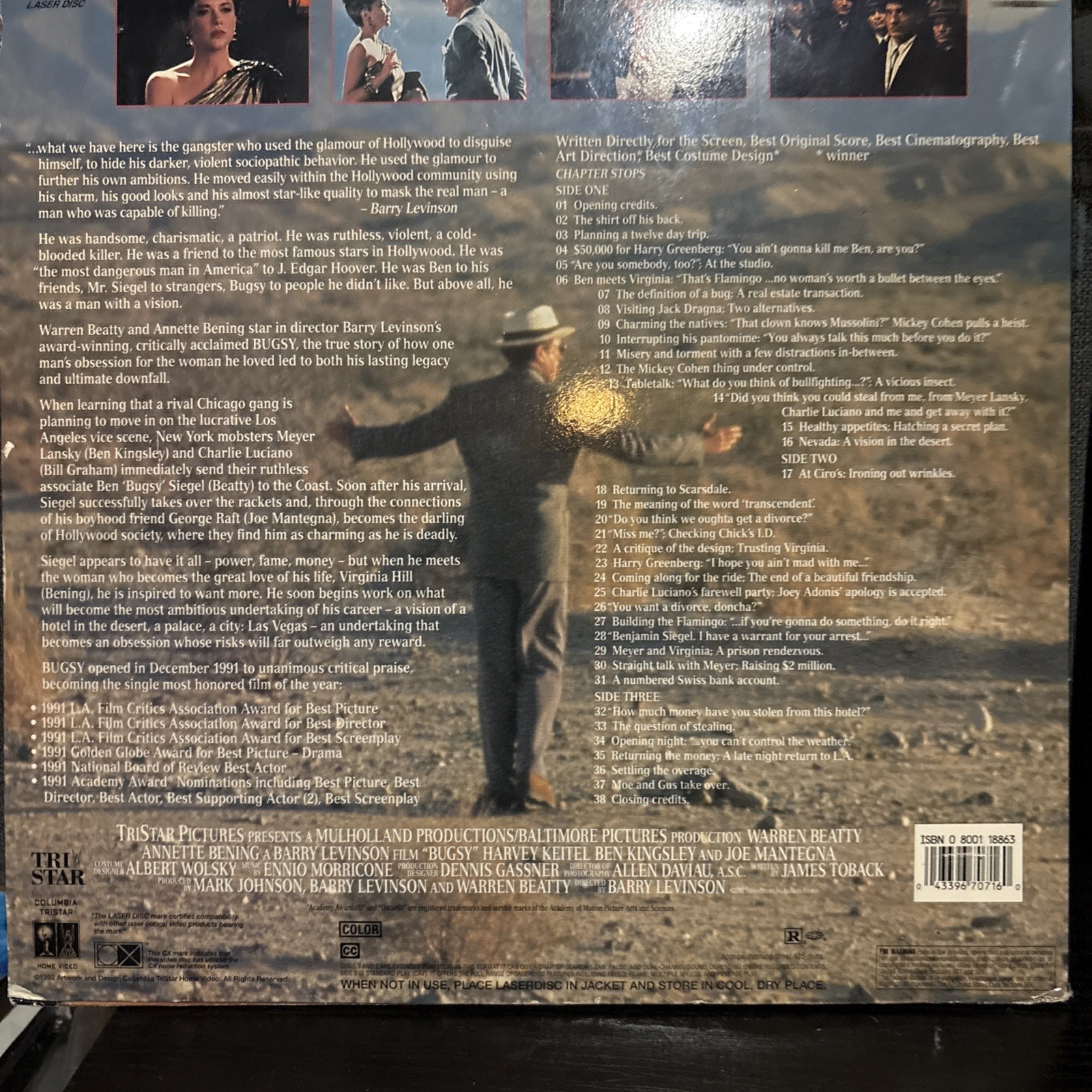 Bugsy Extended Play Laserdisc LD Warren Beatty Annette Bening VG Condition