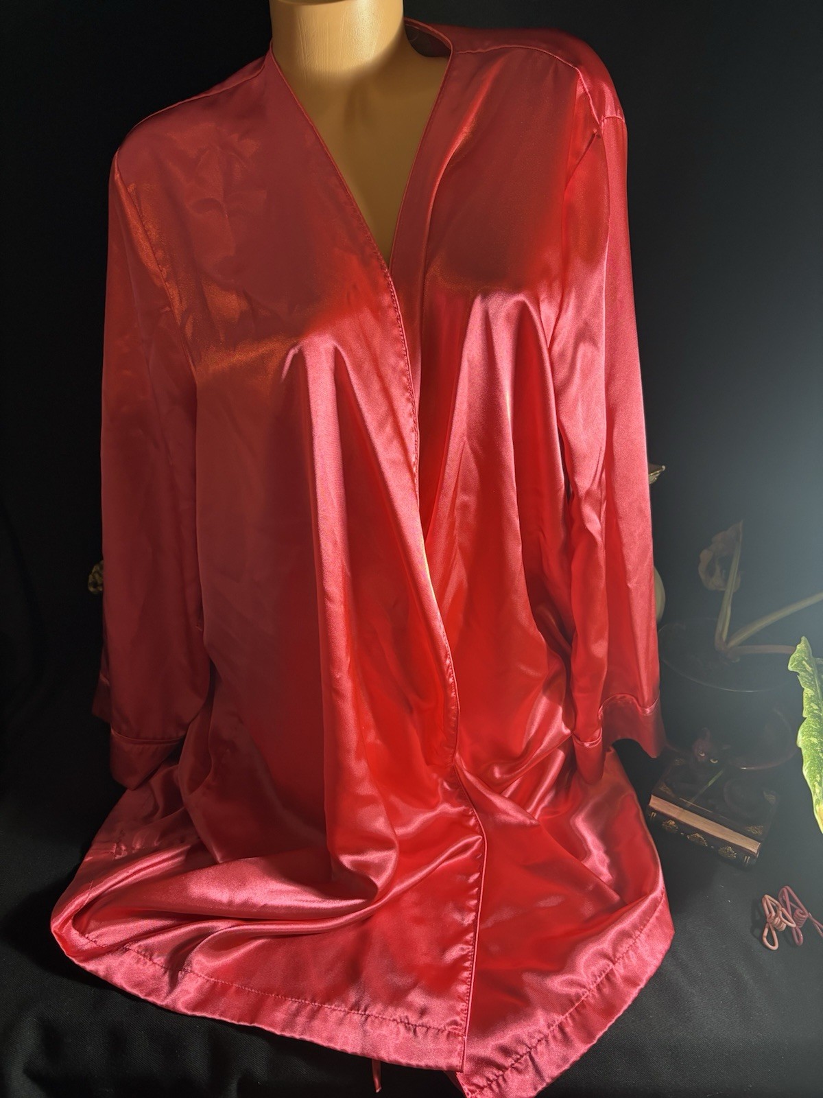 Vtg Satin SOFT SHINY PINK NIGHTIE ROBE Peignoir Robe Nightgown Gown 1X 54