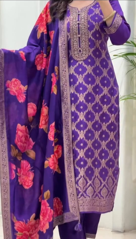 Purple Salwar Kameez Readymade Indian Designer Kurta Palazzo Designer Dupatta