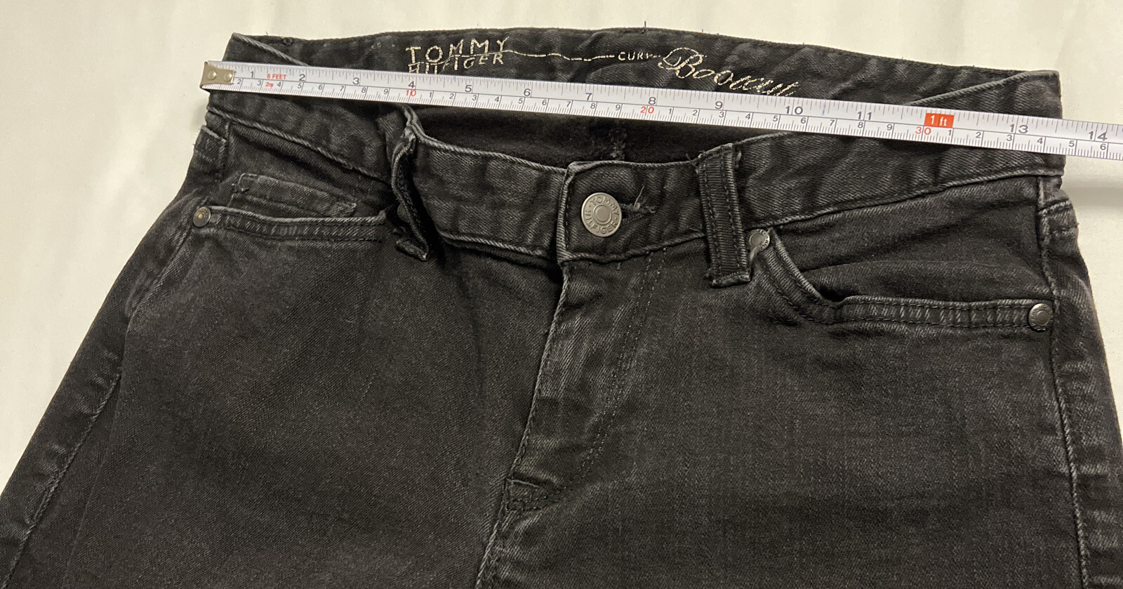 Vintage 90 s Tommy Hilfiger Black Curve Bootcut Denim Jeans Size 2