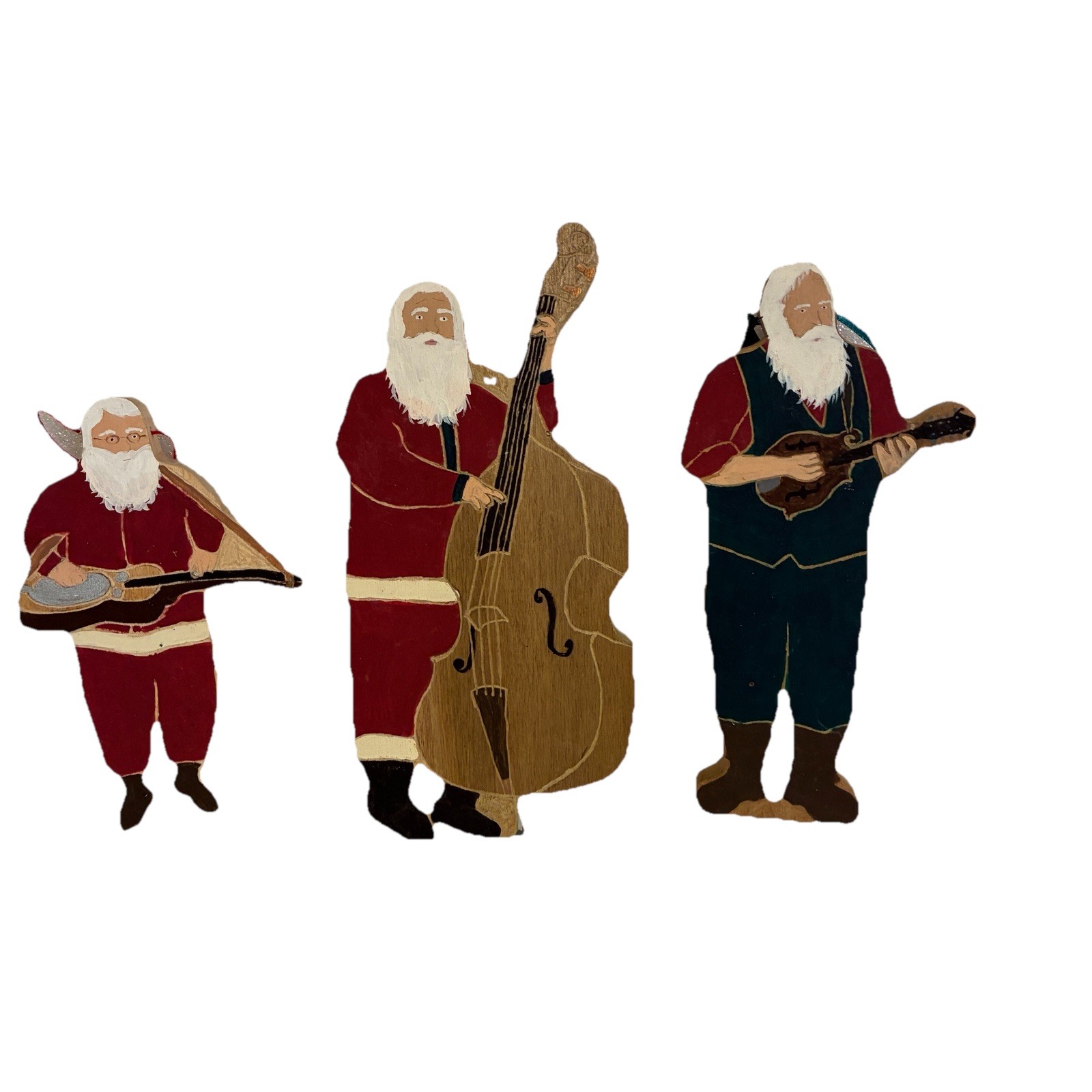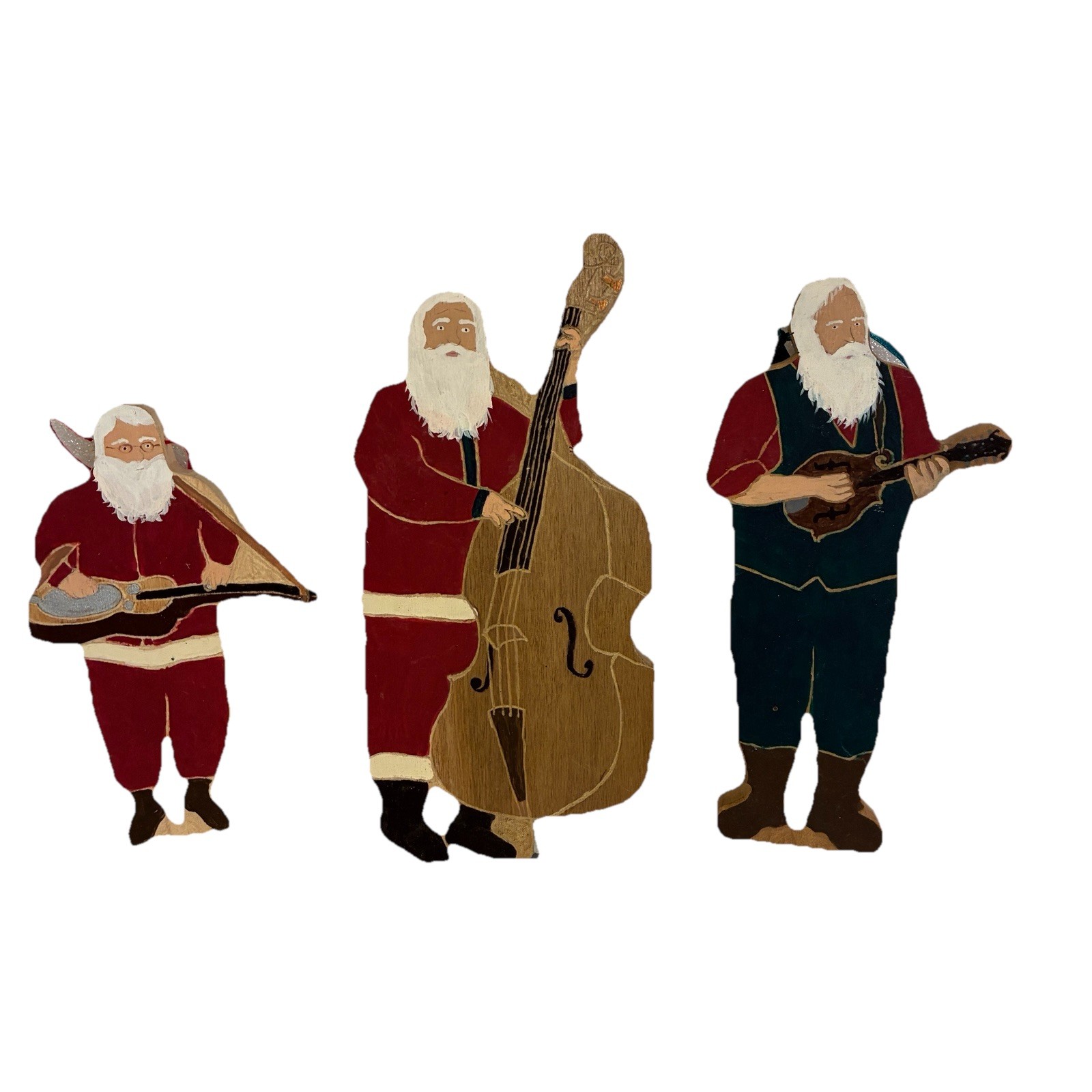 3 Santas Handmade, Cut And Painted By A Local Mississippi Artist. Unique.