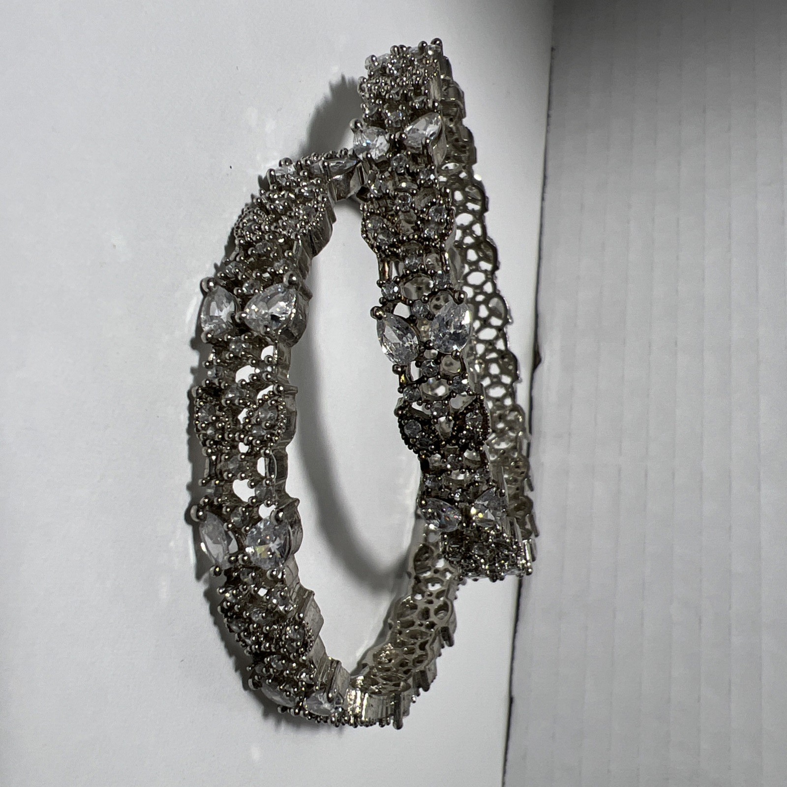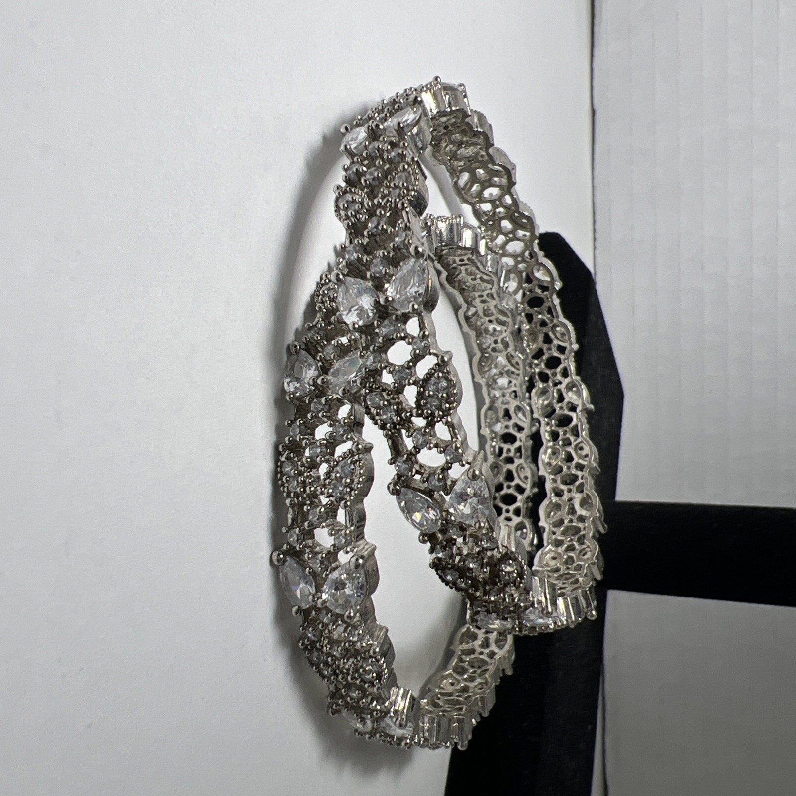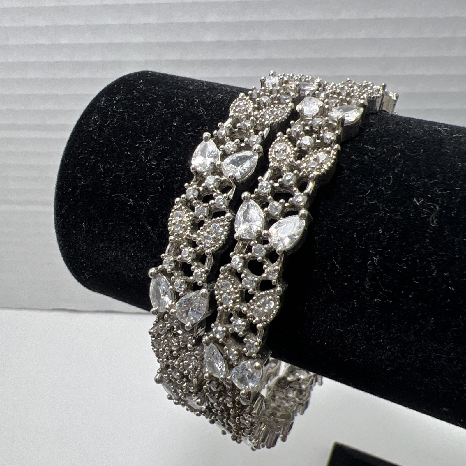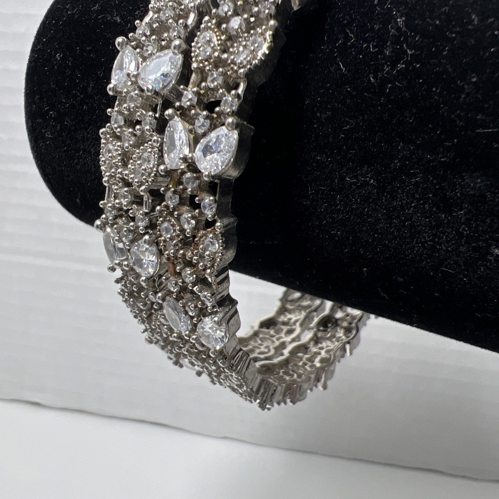 Silver Tone Kangan Pair Clear Crystal Teardrop Slip On Pakistani Bridal Jewelry