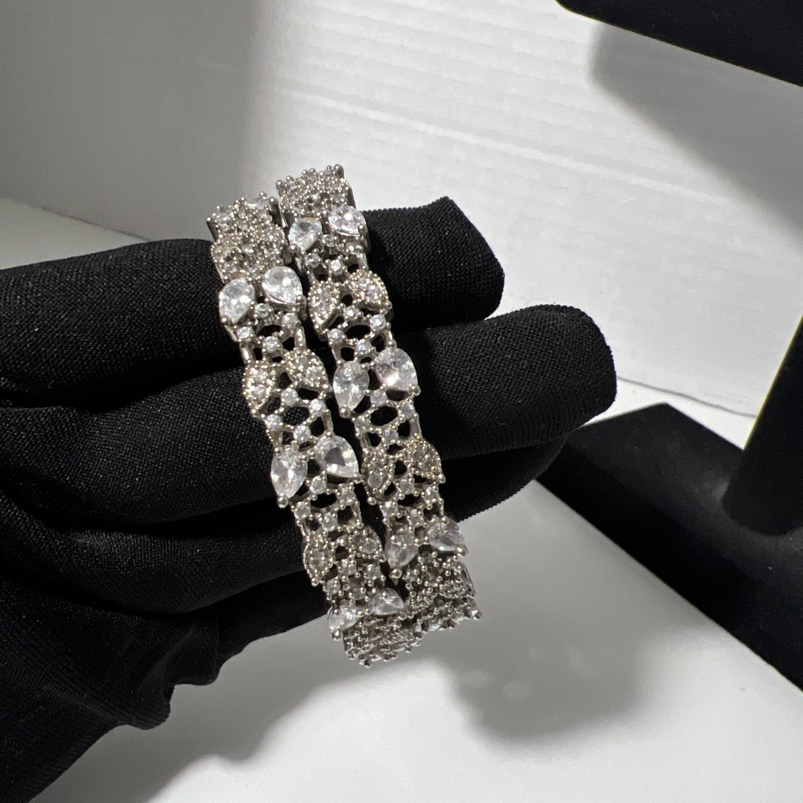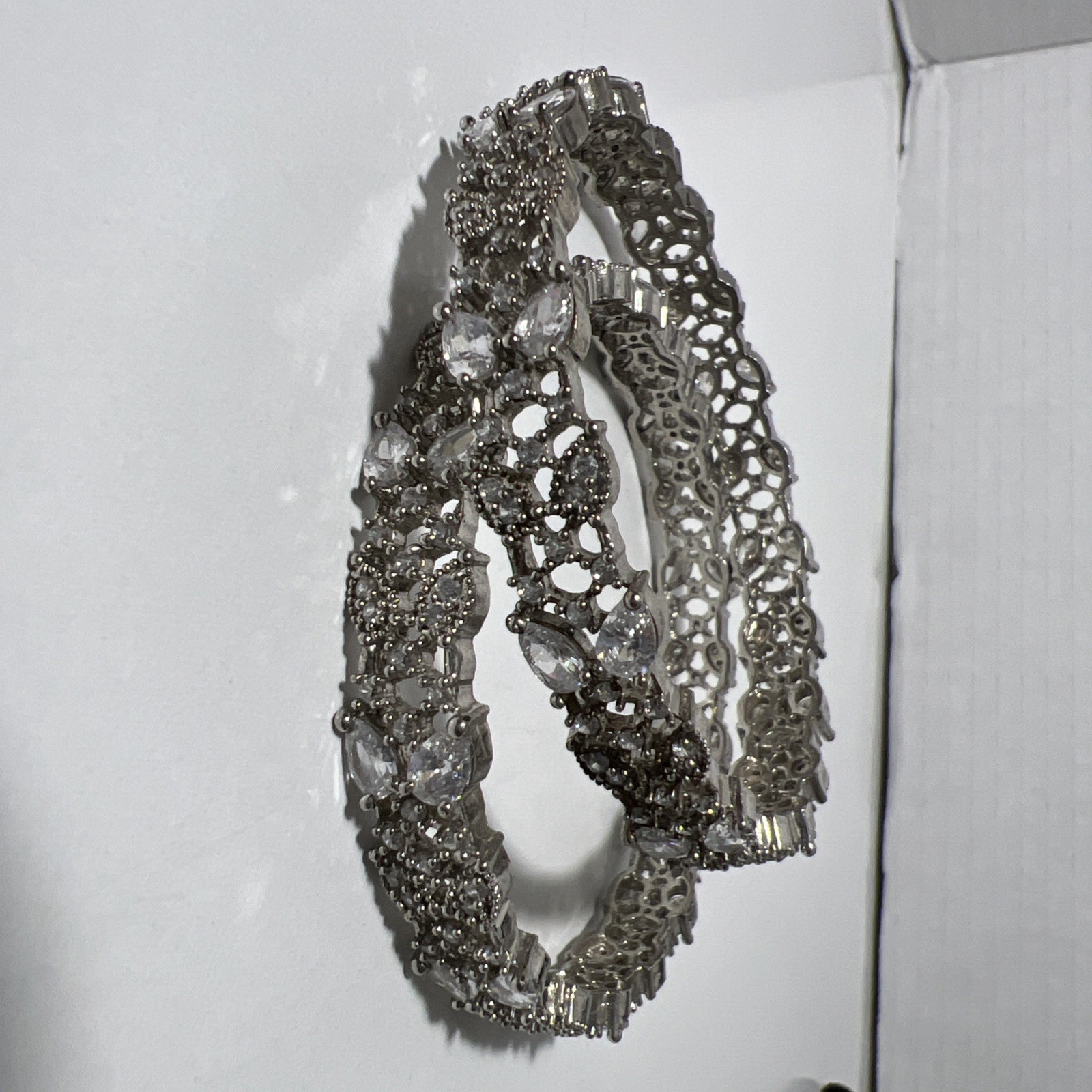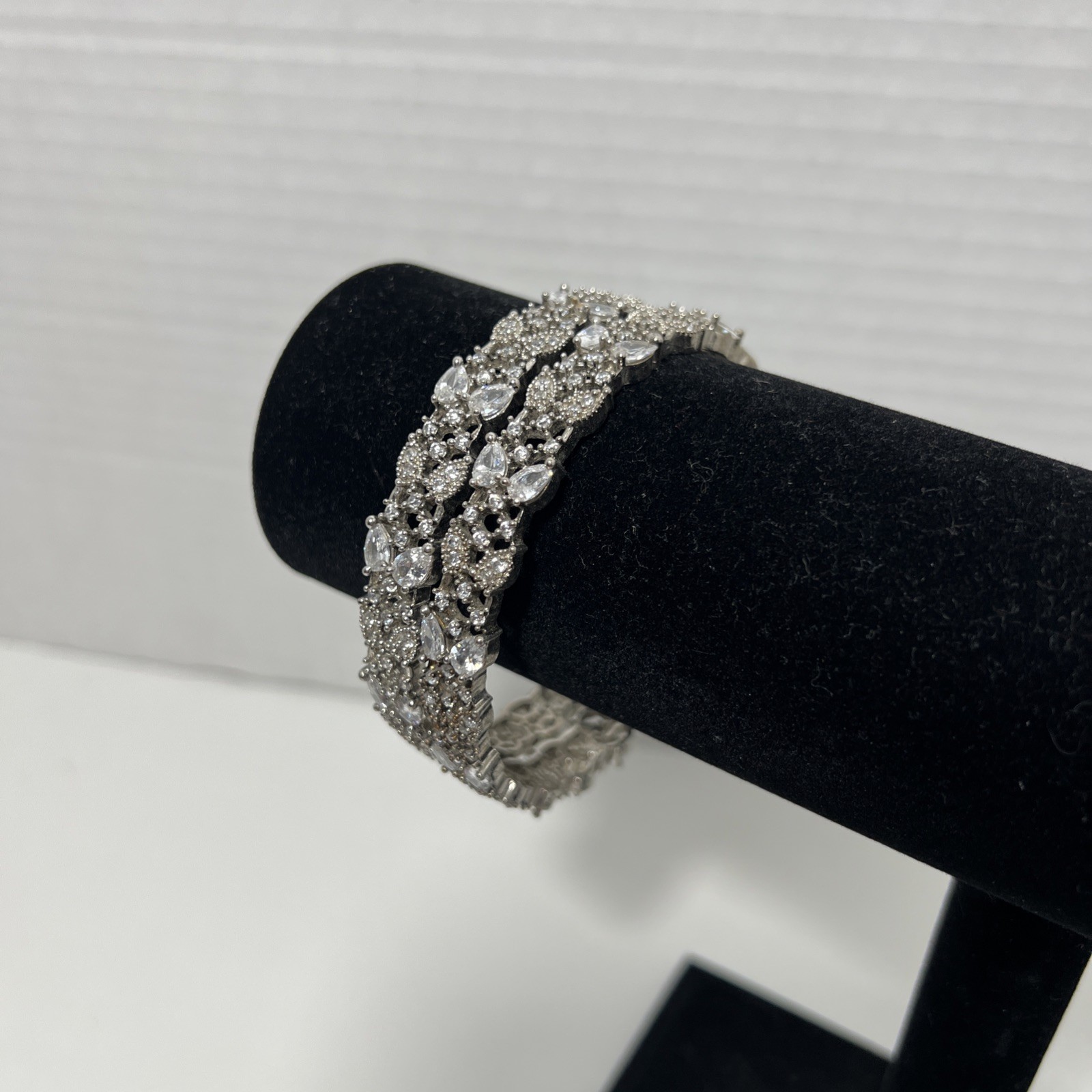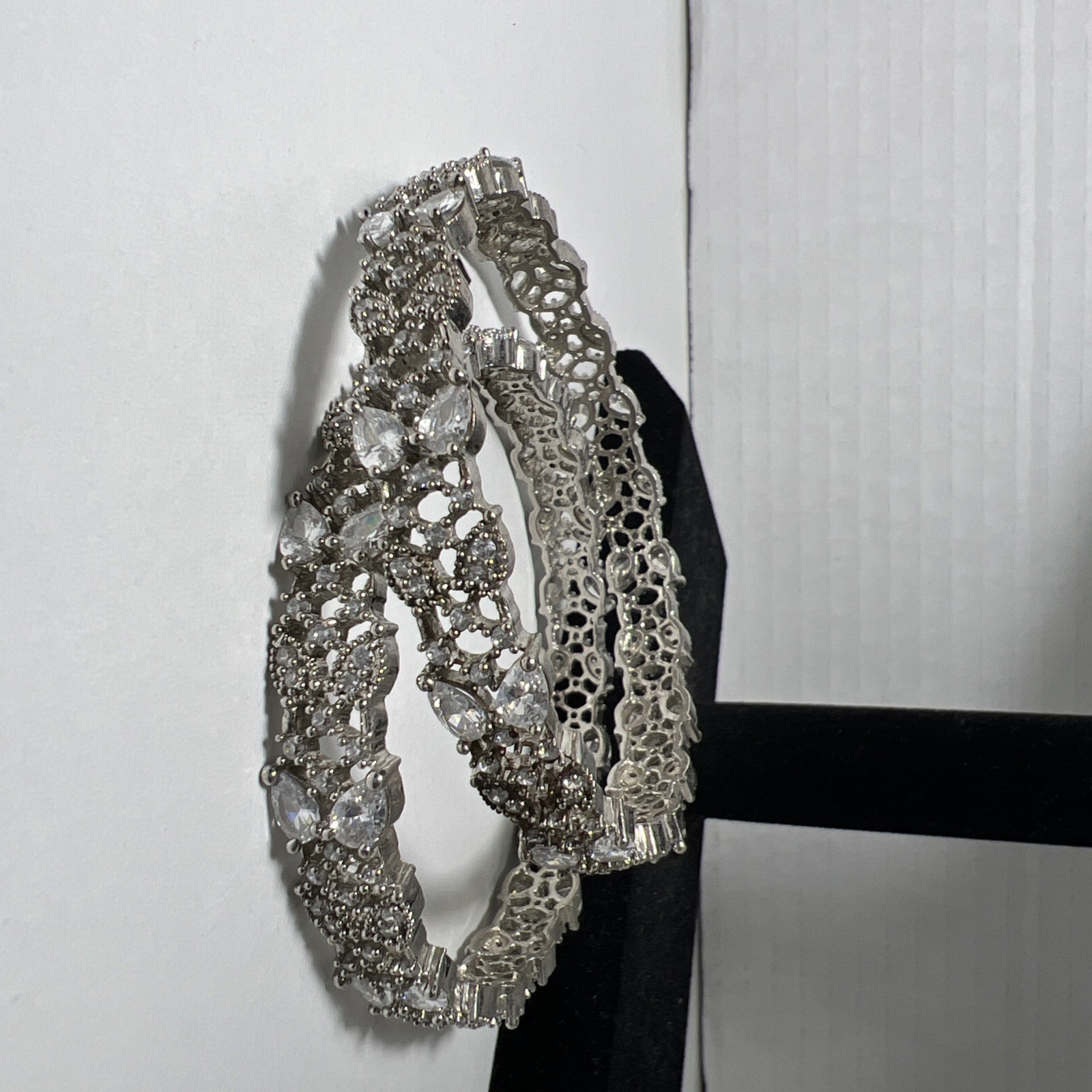 Silver Tone Kangan Pair Clear Crystal Teardrop Slip On Pakistani Bridal Jewelry
