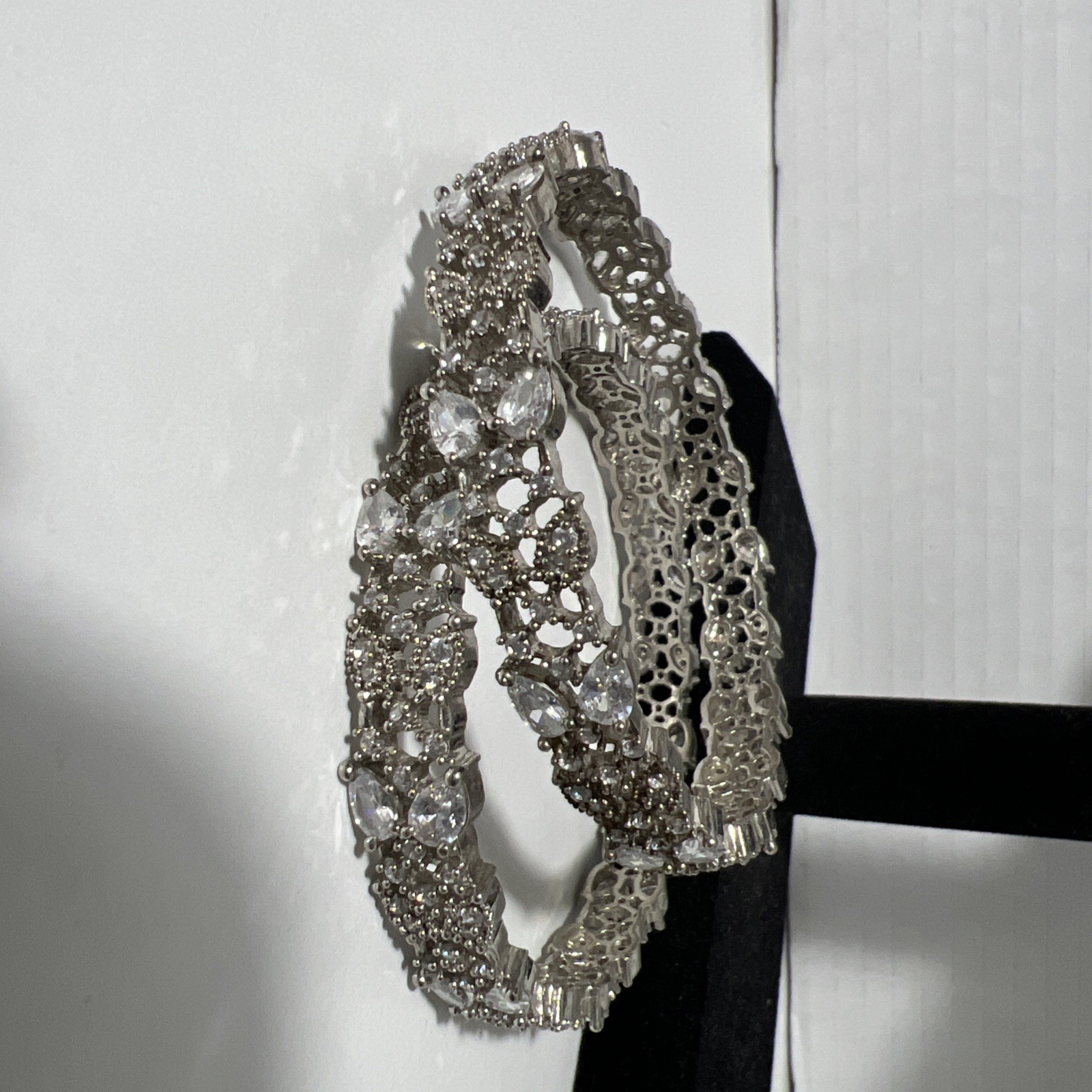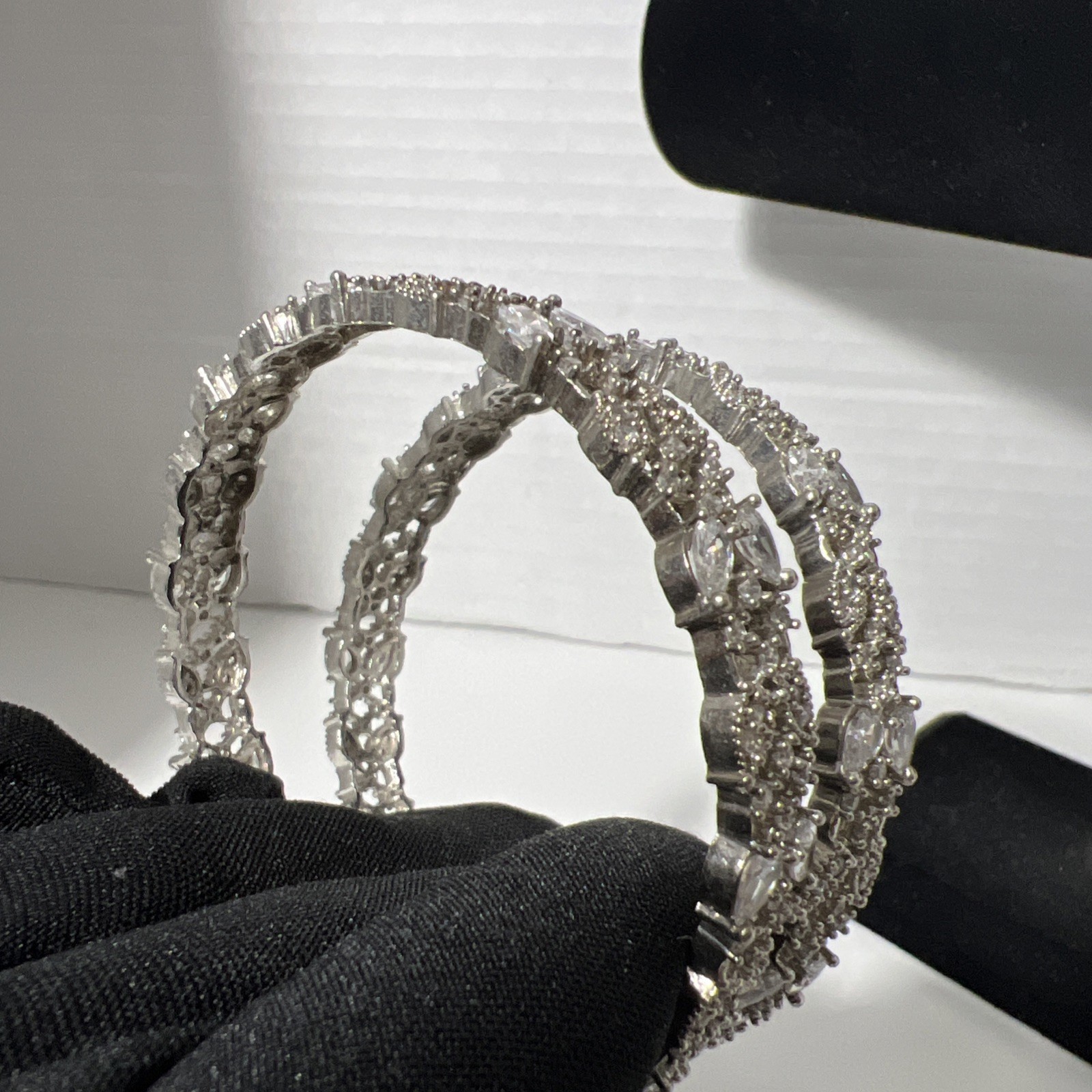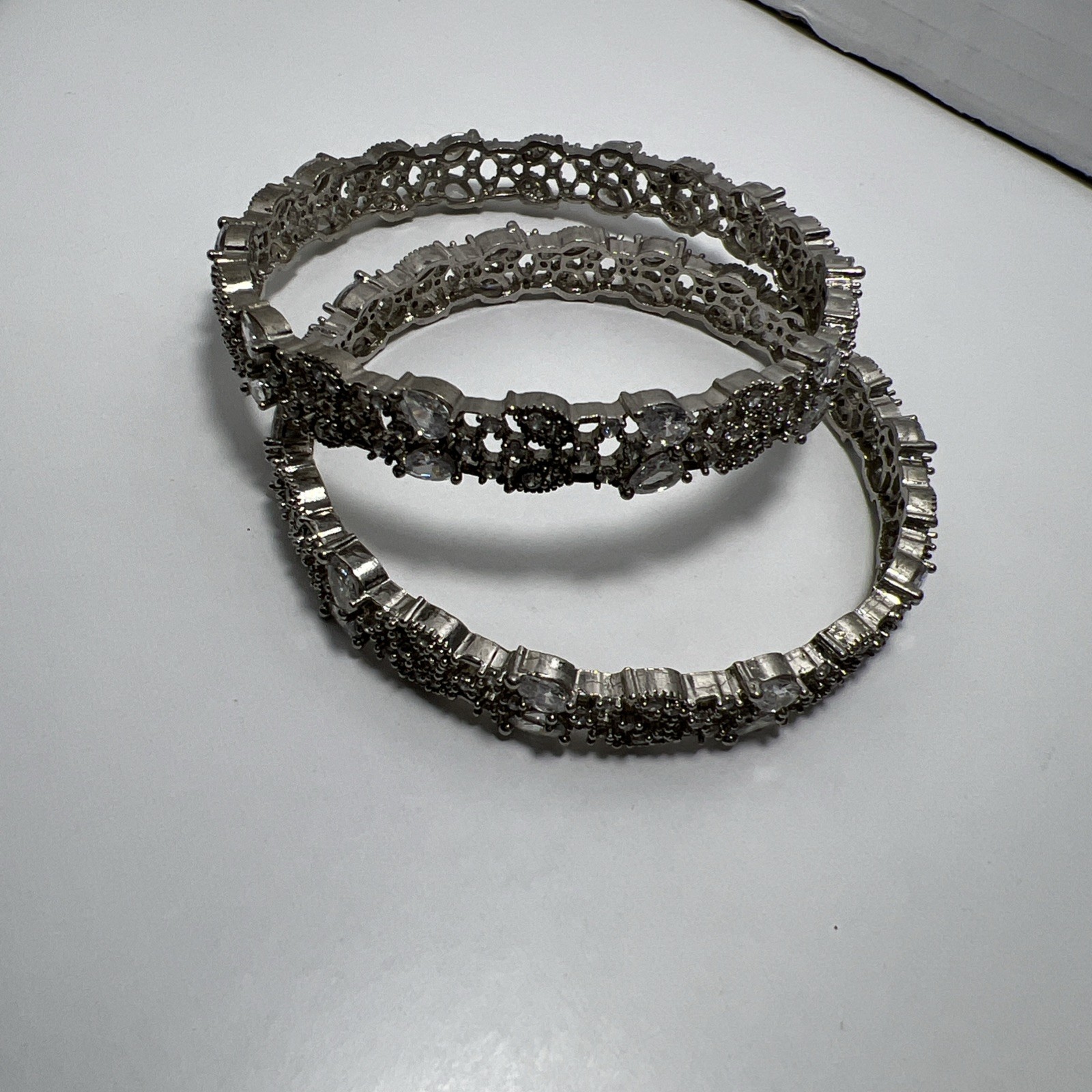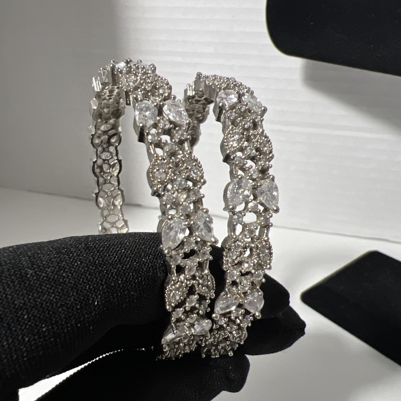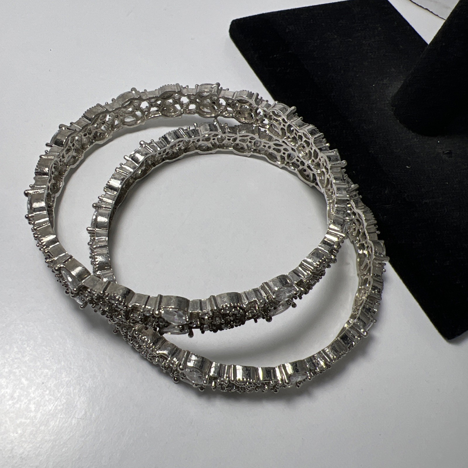 Silver Tone Kangan Pair Clear Crystal Teardrop Slip On Pakistani Bridal Jewelry