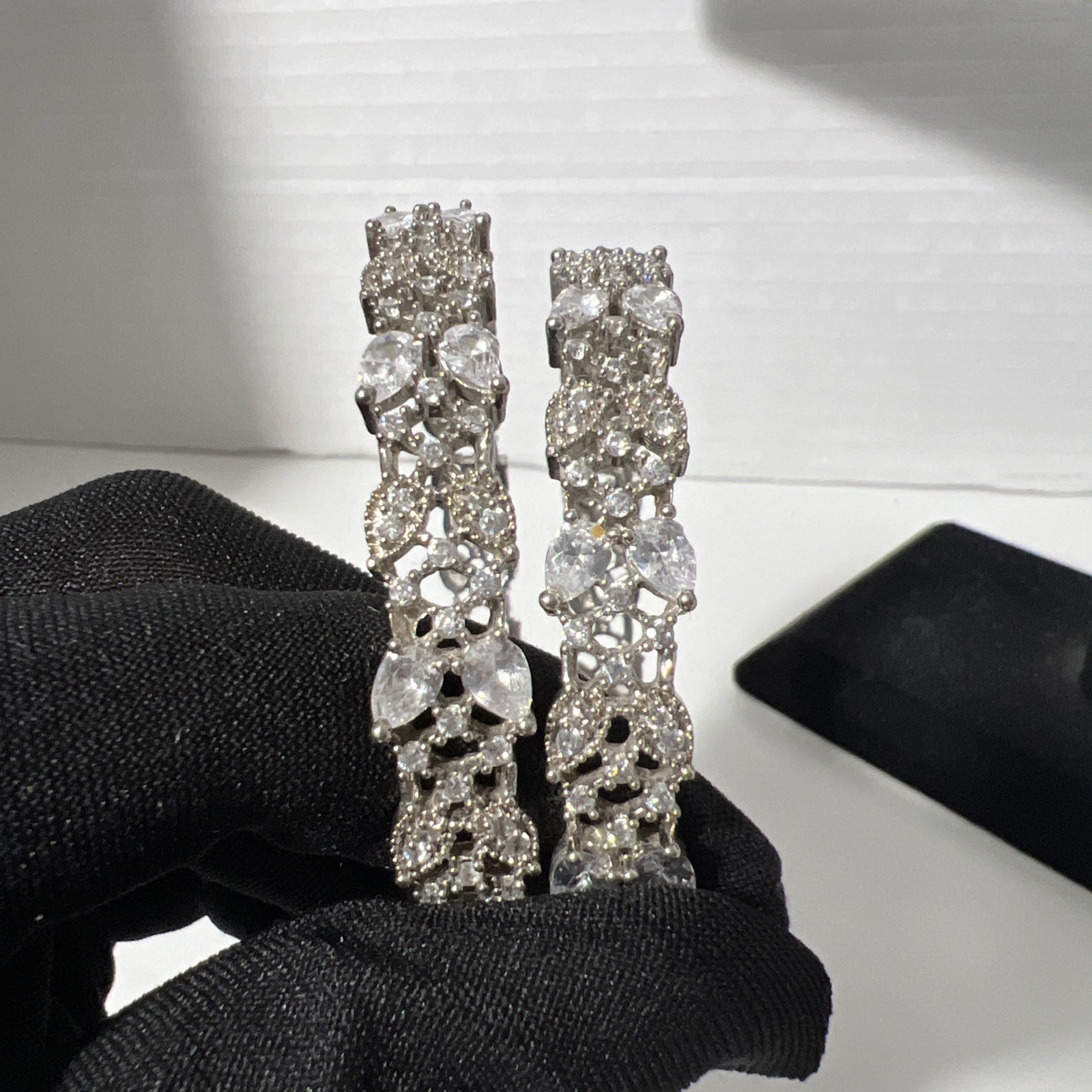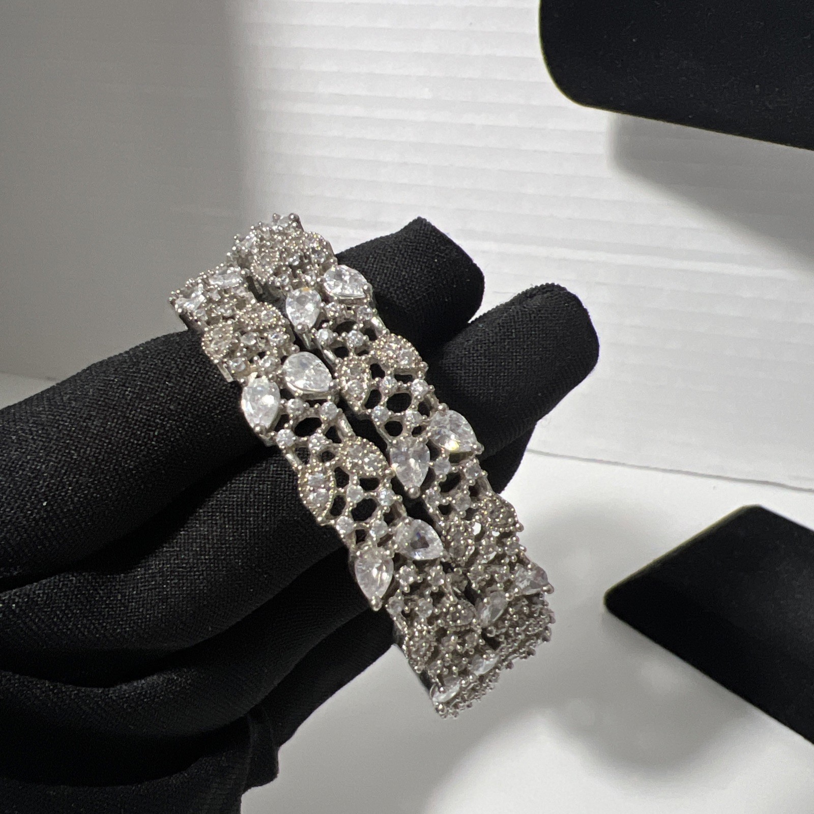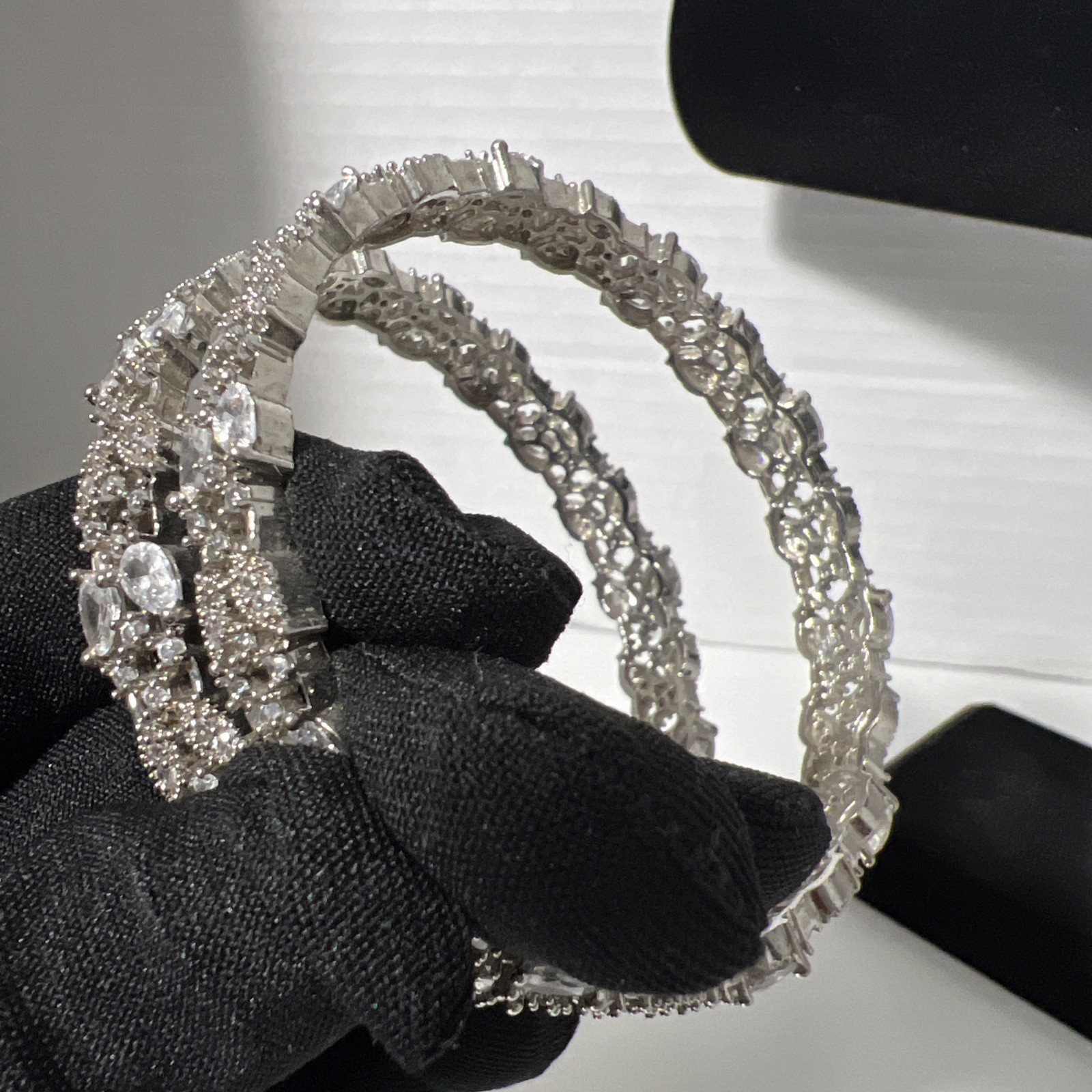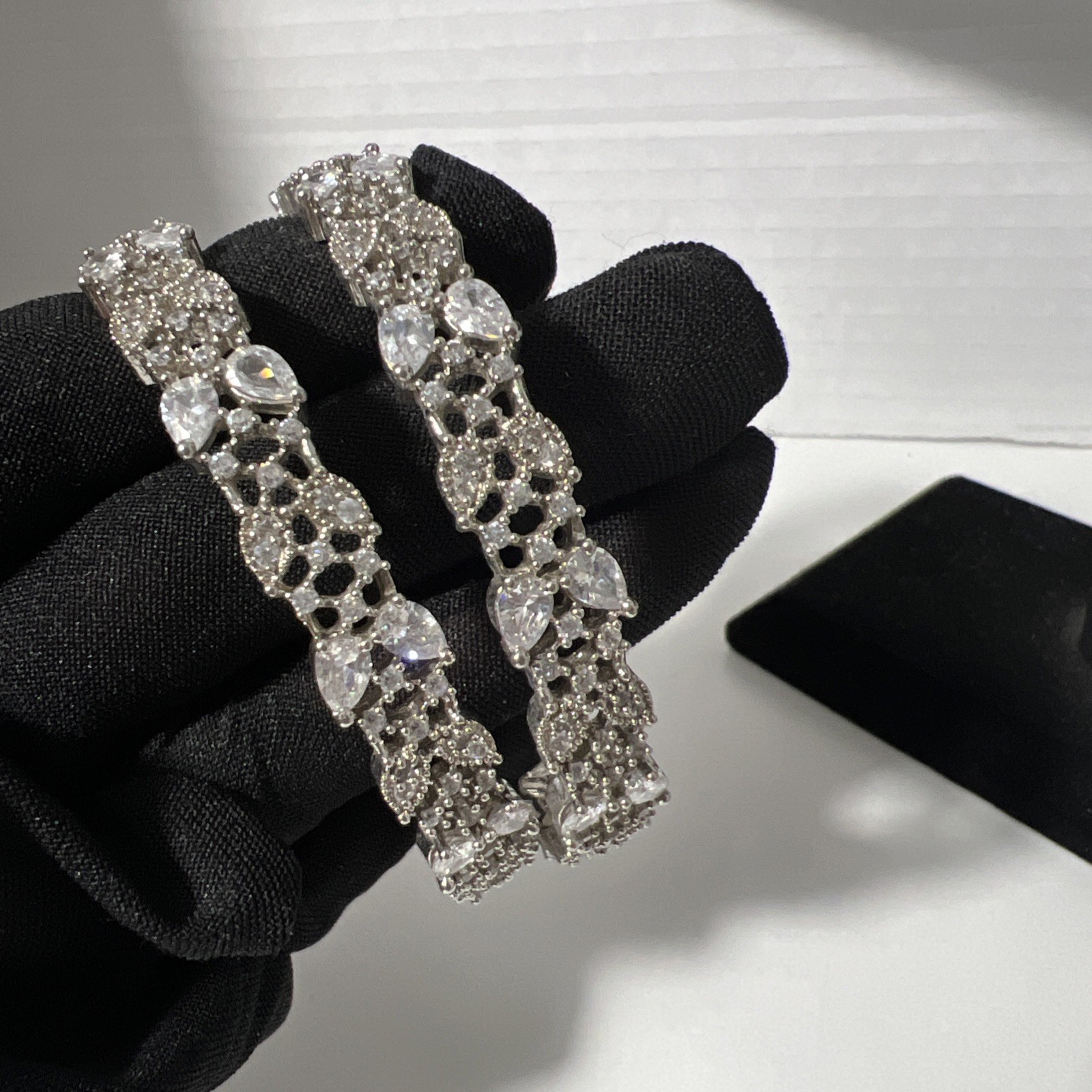 Silver Tone Kangan Pair Clear Crystal Teardrop Slip On Pakistani Bridal Jewelry
