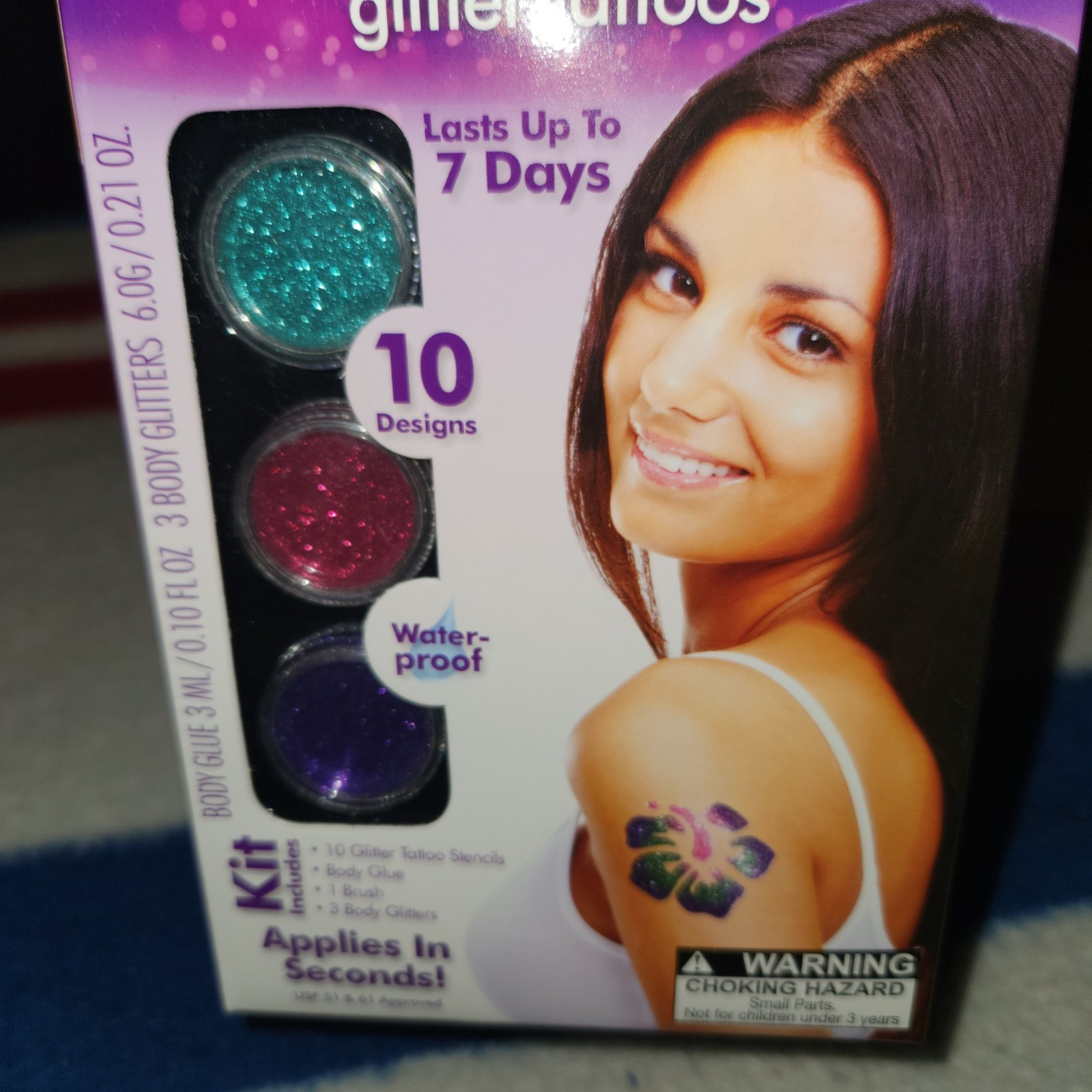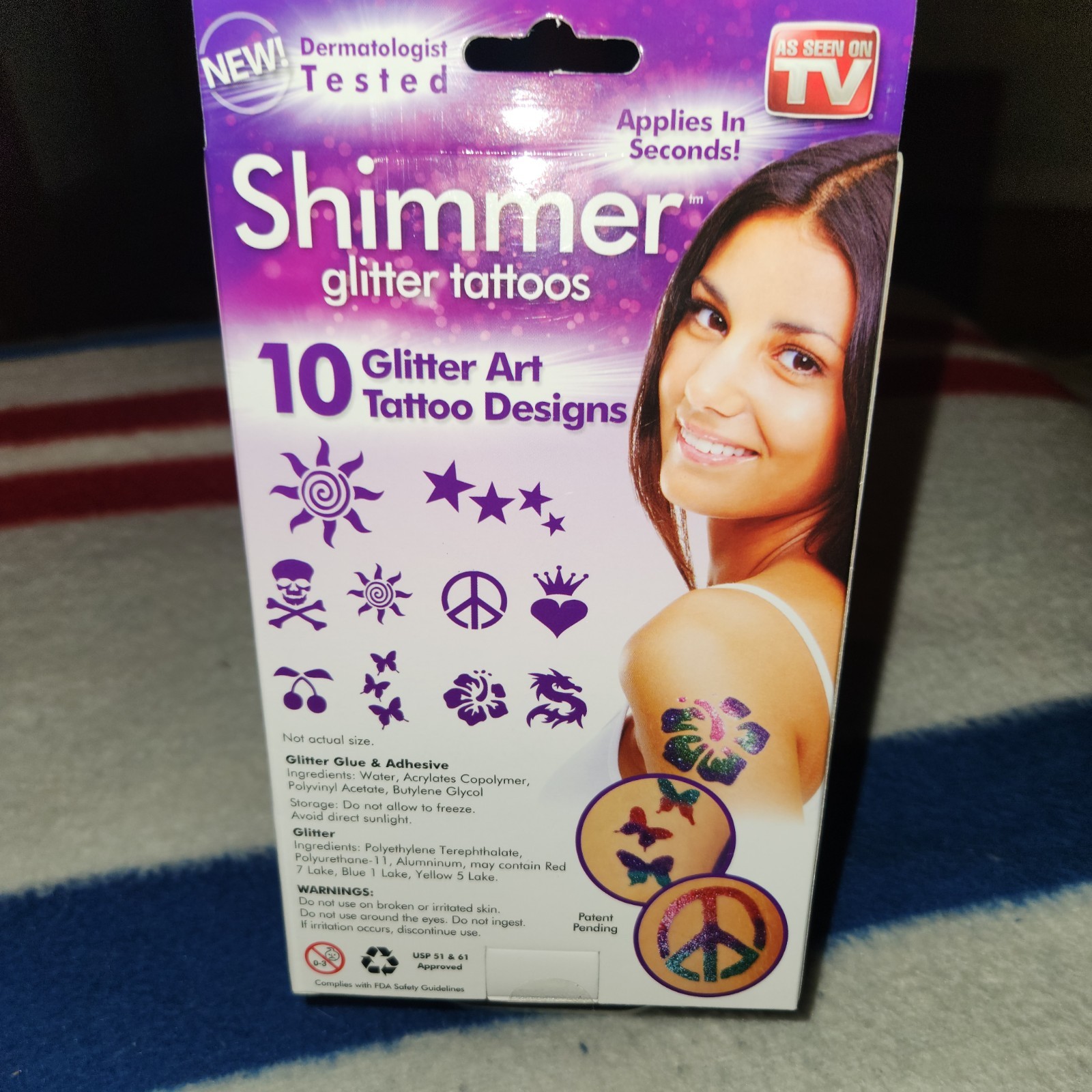 как выглядит Shimmer Glitter Tattoos 10 Designs 3 Body Glitters Applies in Seconds NEW in box фото